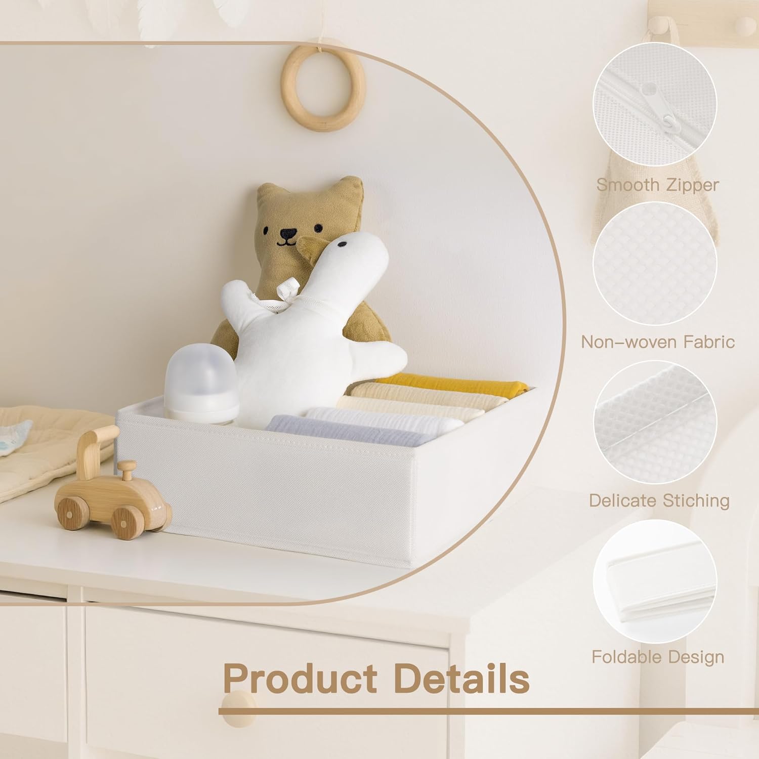 - Multi-Use: Transform any space in your home with our drawer organizer bins! Perfect for bedrooms, living rooms, offices, and kids' rooms, they maximize storage potential. Ideal for organizing baby clothes, socks, underwear, bras, and more