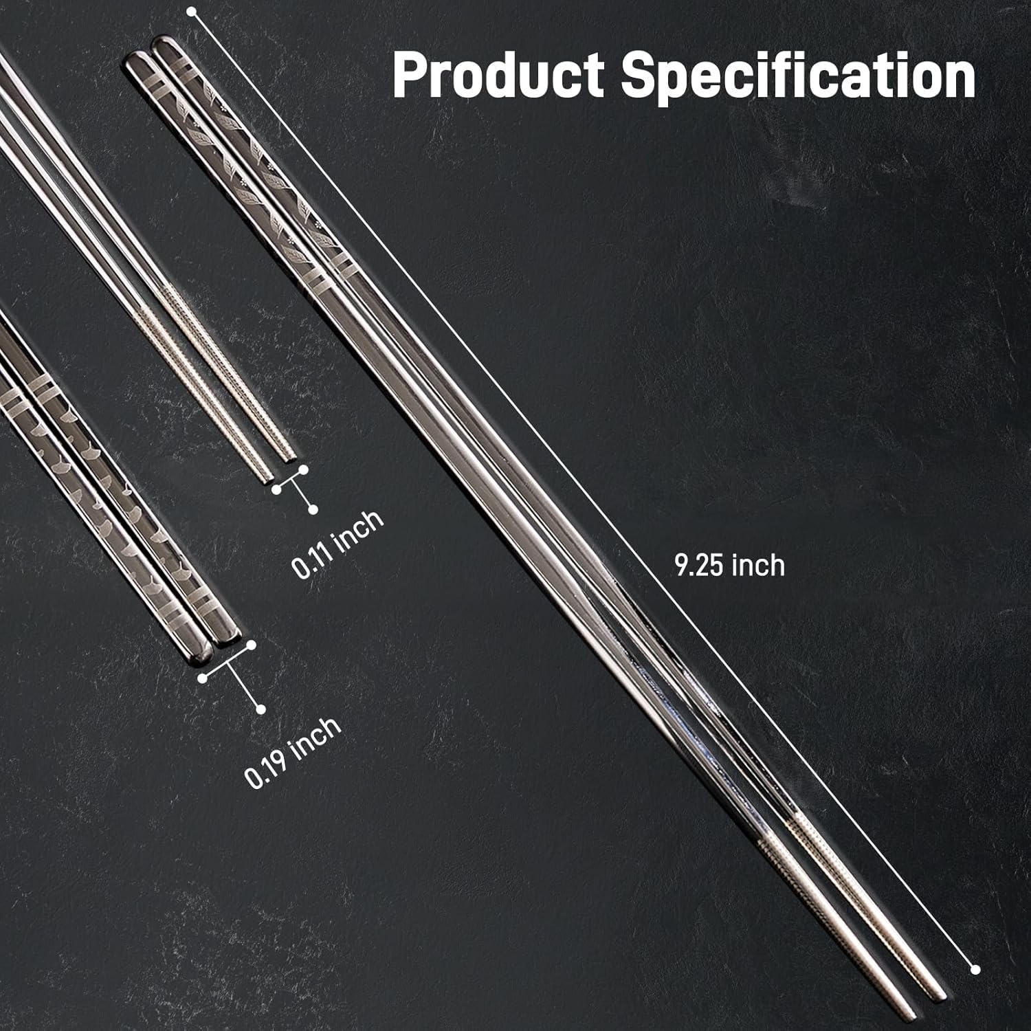 - Dishwasher-Safe, Non-Slip Stainless Steel Chopsticks: These stainless steel chopsticks feature laser-etched tips that provide a non-slip surface, making it easier to grip food. The metal chop sticks are reusable, dishwasher-safe, and designed with a hollow interior, making them lightweight and comfortable to use