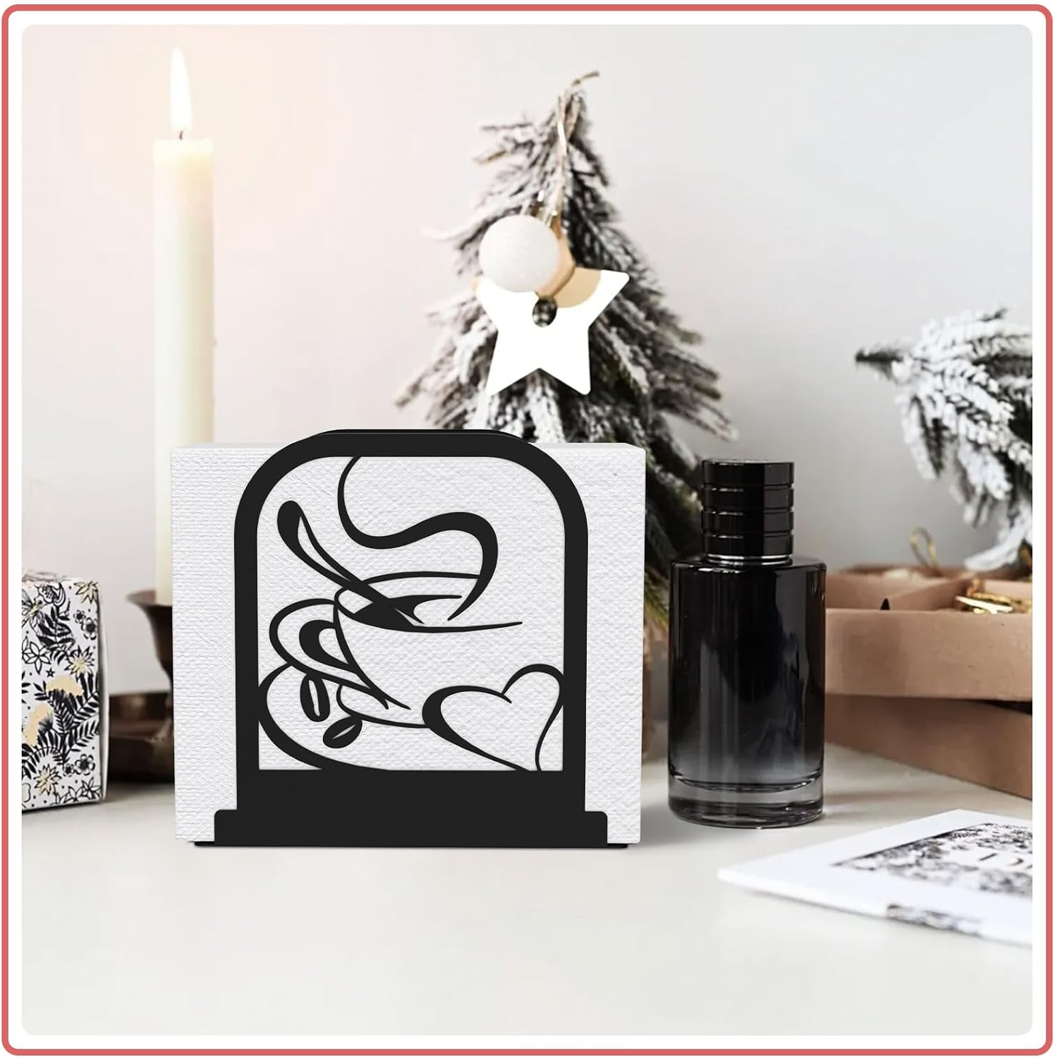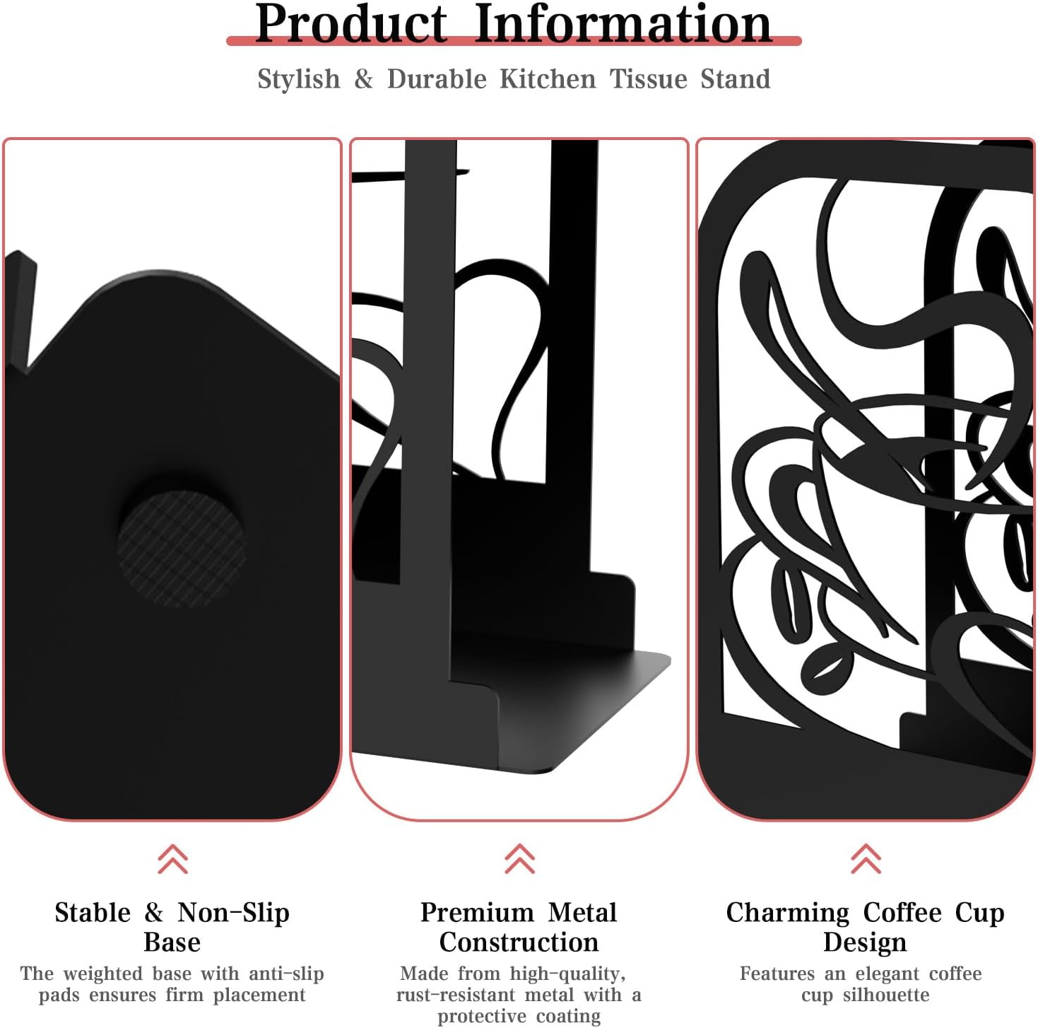 Modern Standing Napkin Holder for table, Black Metal Napkin Dispenser, Coffee time Theme Style Napkin Holder, Suitable for Kitchen, Coffee Shop, Dining Room