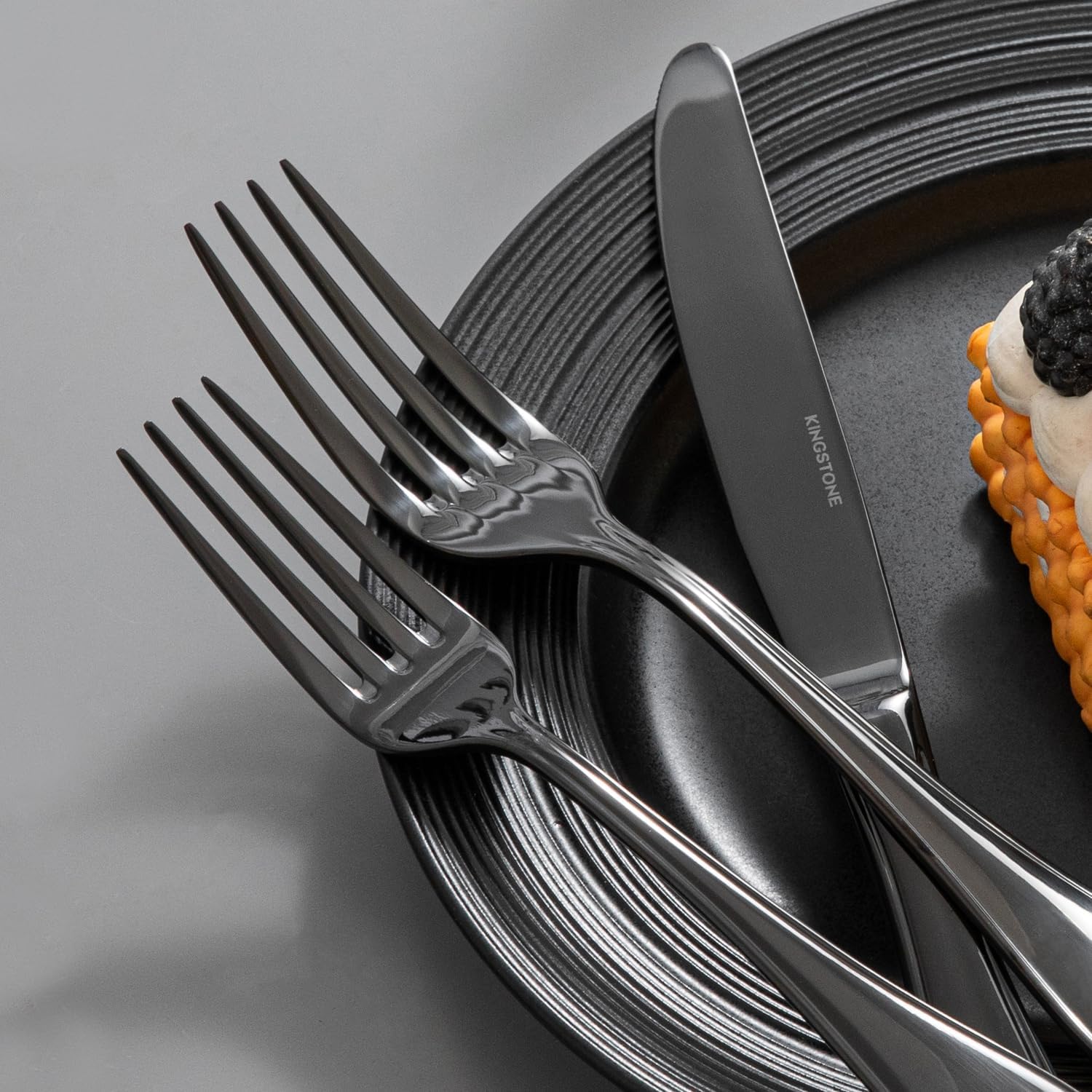 KINGSTONE 20 Piece Teardrop Silverware Set for 4, 18/10 Stainless Steel Flatware Set, Modern Design Cutlery Set for Home/Hotel/Wedding,Mirror Polished and Dishwasher Safe, Black