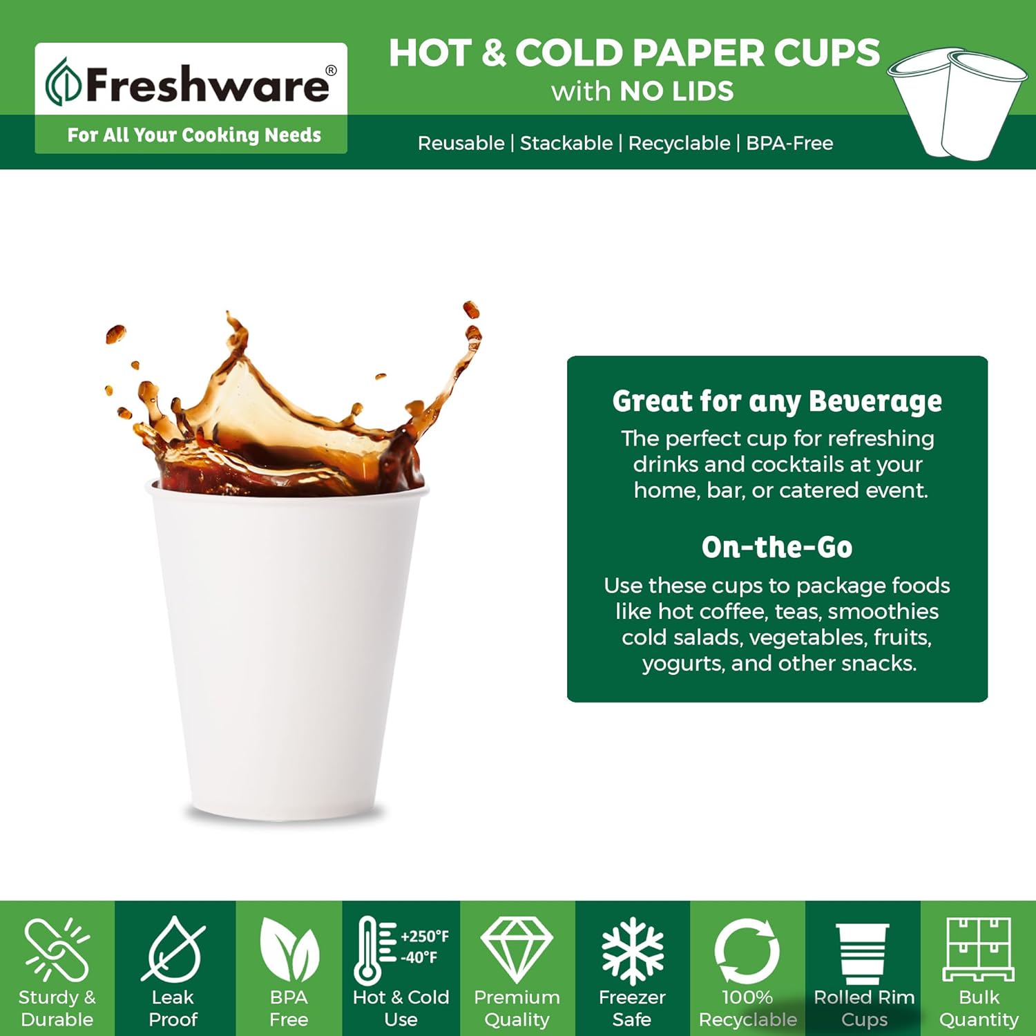 Freshware Coffee Cups 8 oz [1000 Pack] Disposable Paper Cups for Hot or Iced Coffee Cup, Slushie Cup, Milkshakes, Smoothies, and Tea
