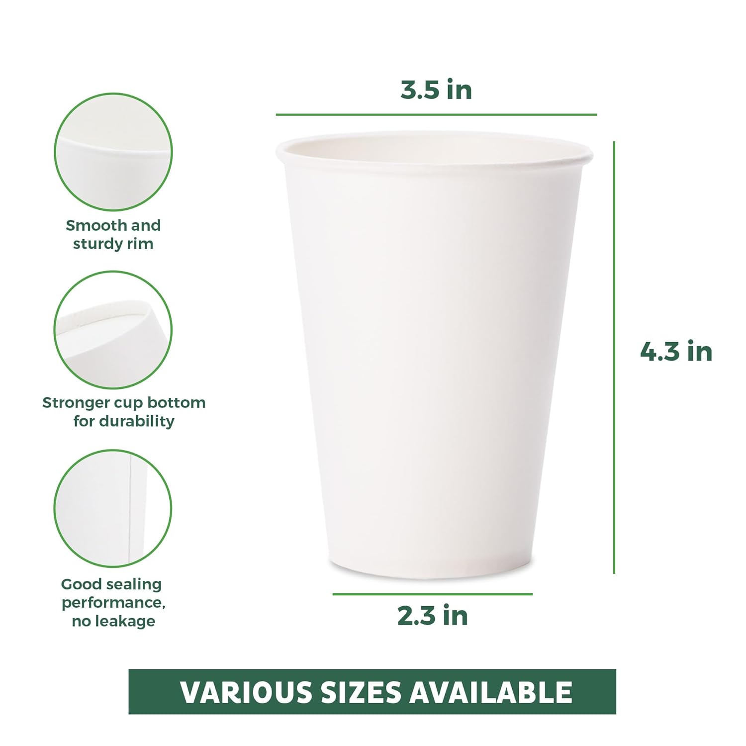 - Leak-Resistant Design - Made from thick, durable paper, our 12oz coffee cups are engineered to be leak-resistant for up to 7 days