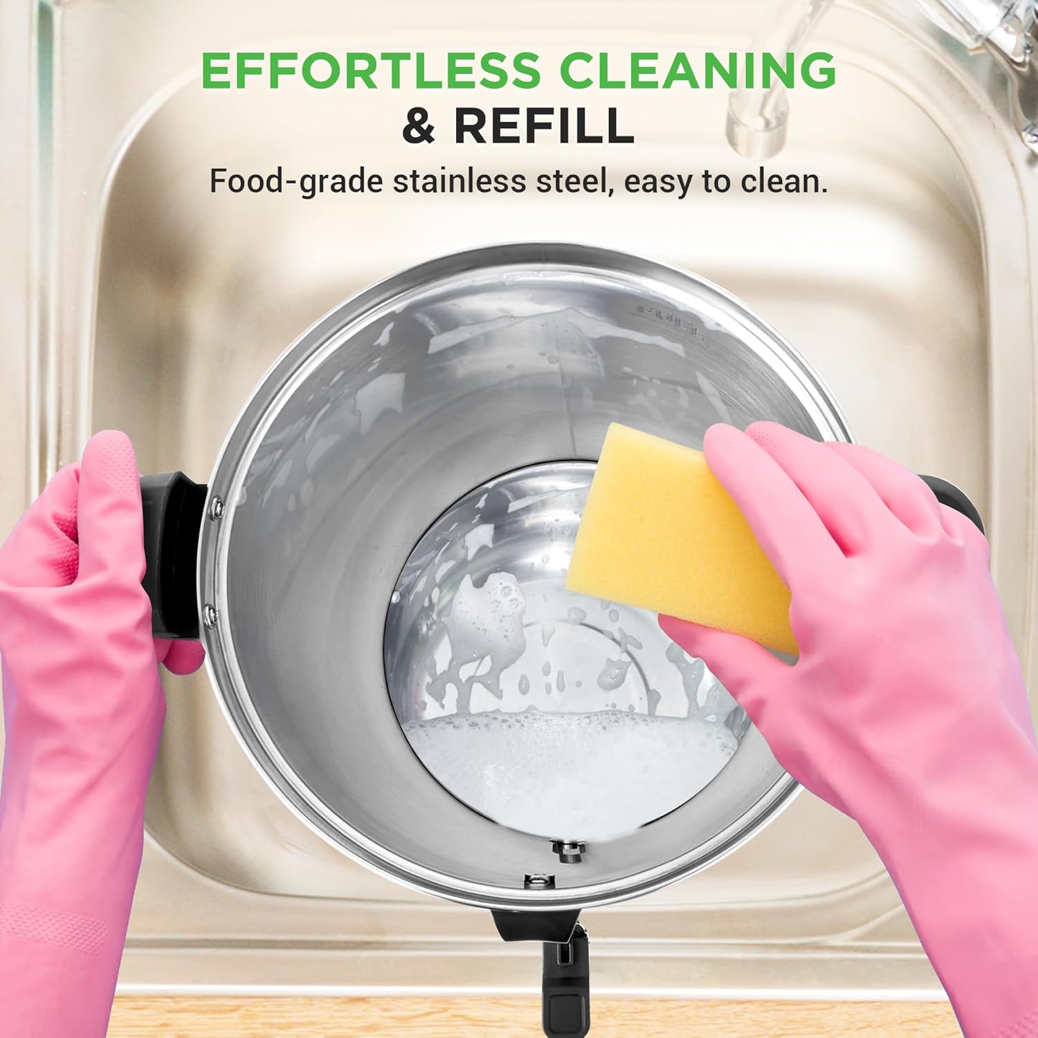 - POWERFUL, COMPACT, AND EASY TO USE - With 1100W heating power and a sleek footprint (11.4" x 11.4" x 23.8"), this electric hot water dispenser is countertop-friendly. Cool-touch handles and plug-in operation provide maximum safety and ease of use.