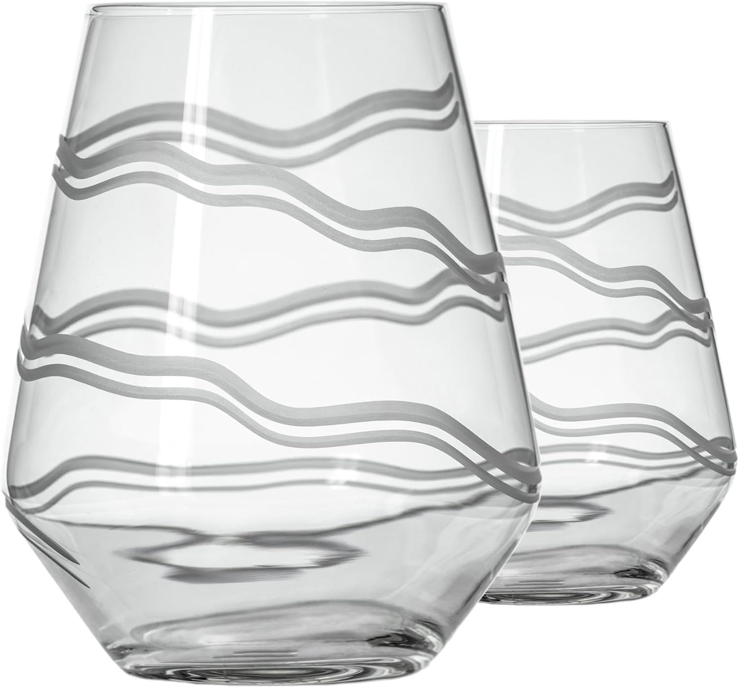 Rolf Glass Good Vibrations Stemless Wine Glass | 18oz Set of 2 | Lead-Free and Diamond-Wheel Engraved | Proudly Made in the USA | Etched Spiral Design