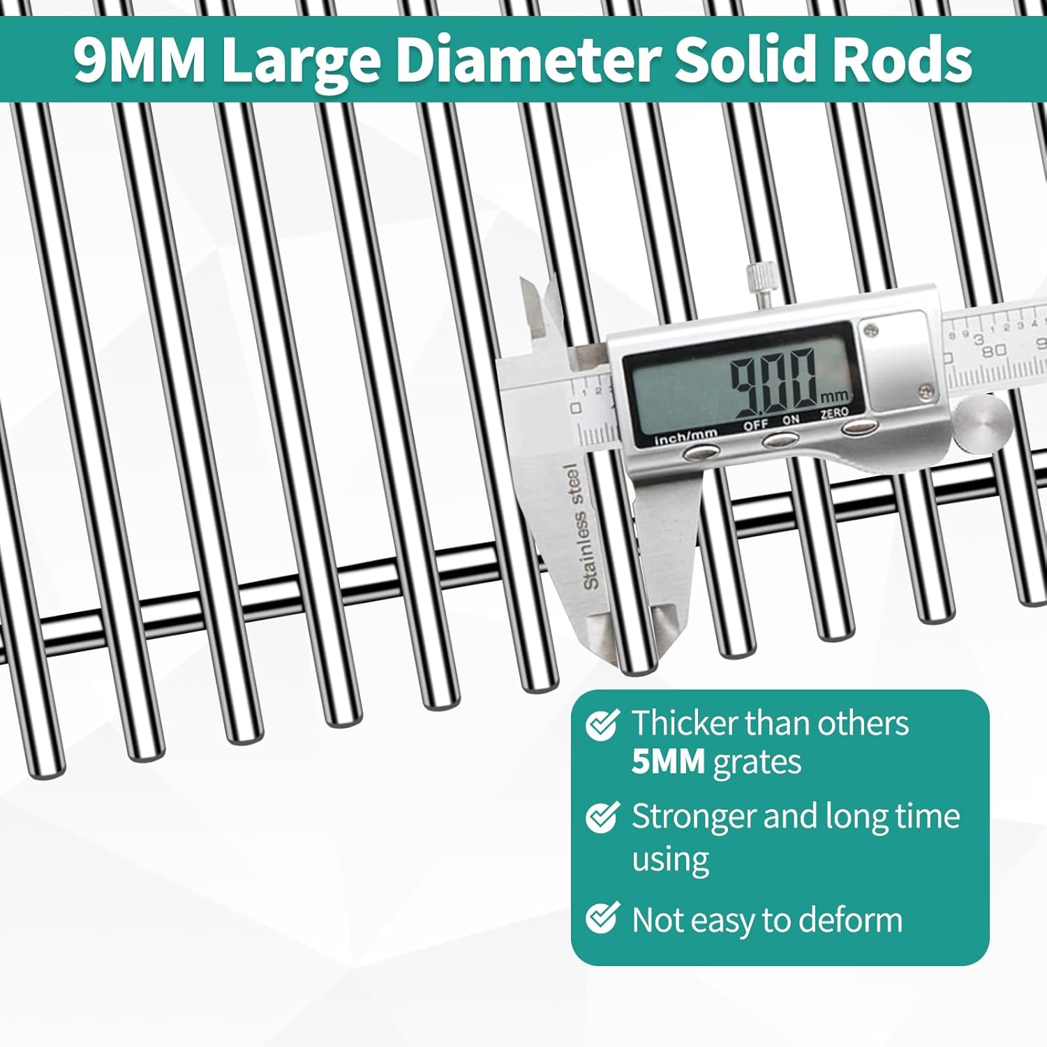 - 【9MM Diameter Solid Rods】Thickness of Meyafiny cooking grate is 9MM, more thicker and stronger than other 5mm/ 7mm grill grates. Our barbecue cooking grill grates feature SUS304 thicken solid rod bars, which are not easy to deform and more durable for long time using.