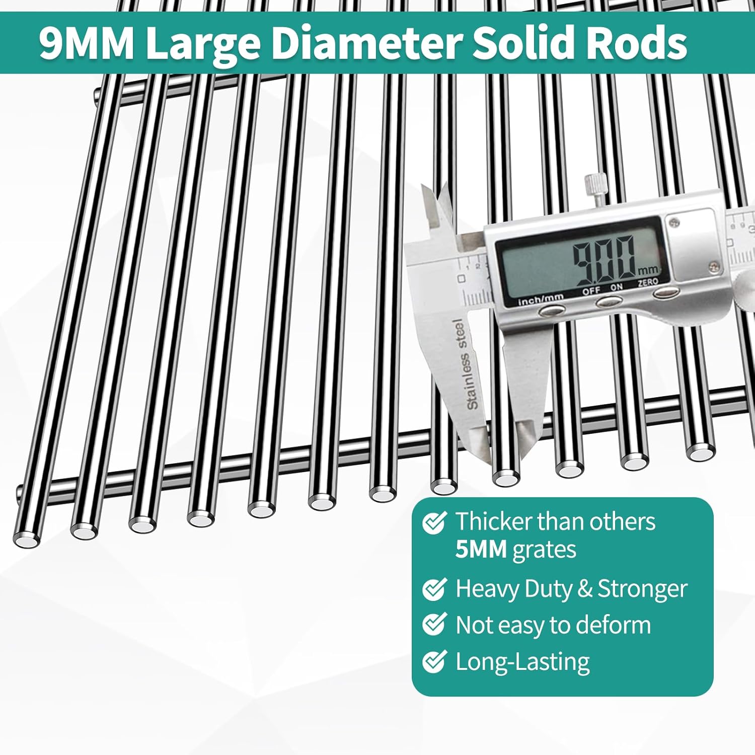 9MM 17.5" Stainless Steel Grill Grates for Weber Spirit E-310 E315 E320 E330 S310 S315 S330 GS4 Spirit 2 Grill Replacement Parts for Weber 7638, 7639 Spirit 300 Spirit II 300 Series Grills