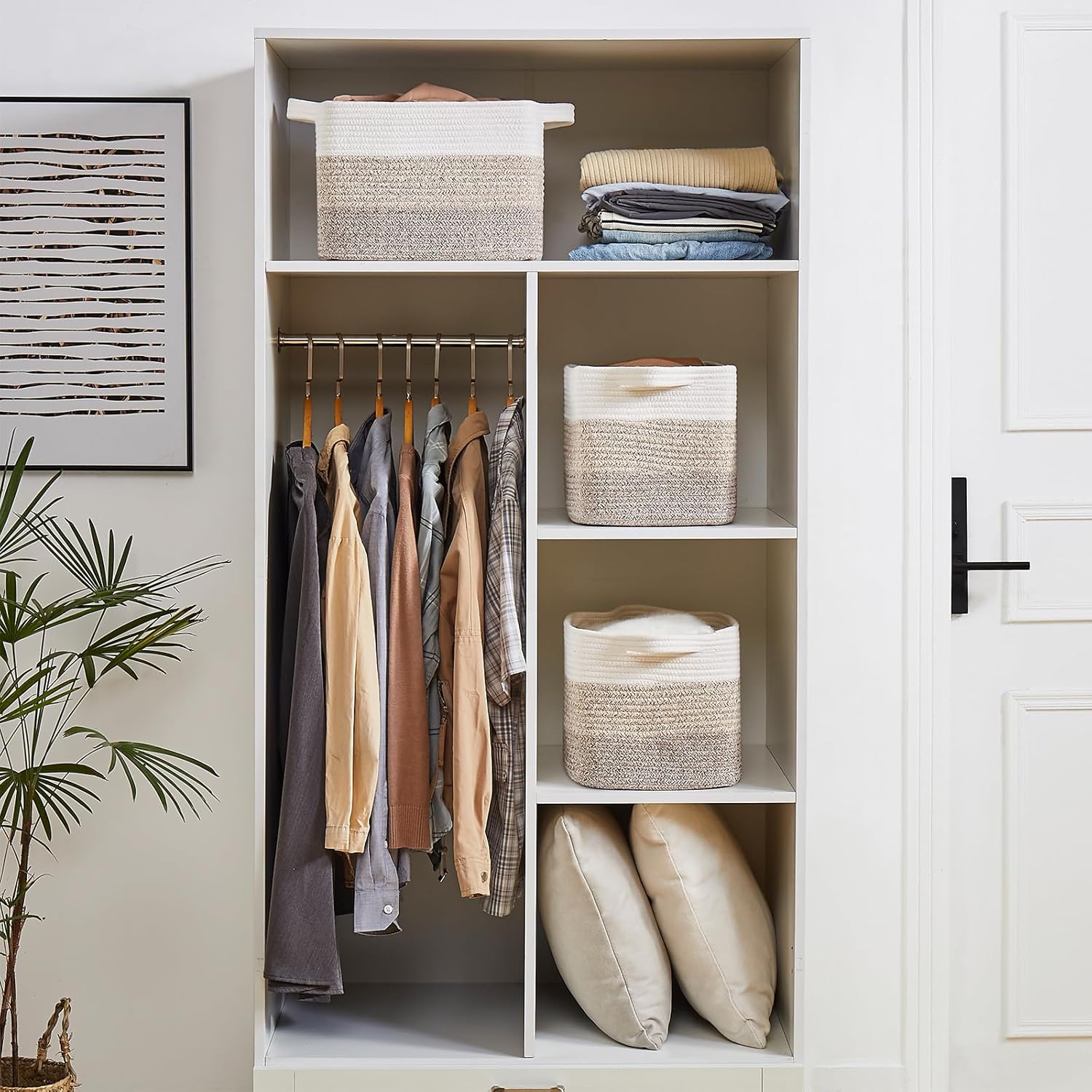 - High Quality Cotton Rope Woven: Woven cotton thread is very soft and don't damage your floors and furniture. Seamless design, not easy to tear,More firm than rattan and plastic materials. Our storage basket has no harsh chemiacls added, and the cotton rope basket is safe for kids, elders and pets. Firm enough and stylish enough to go anywhere in the home