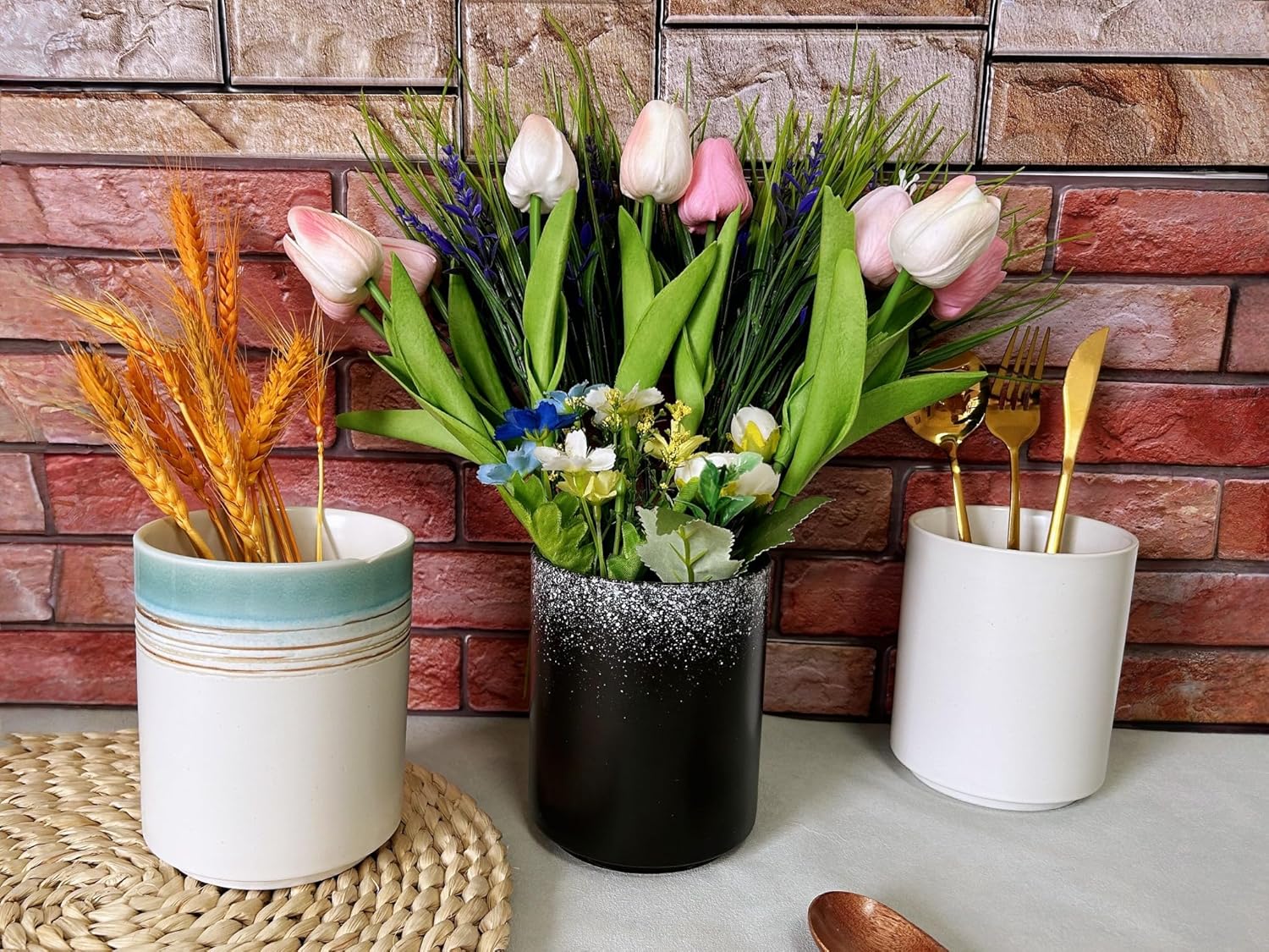 - 💕 【Unique and Ideal Gift】: This elegant large utensil holder for kitchen counter is the perfect gift for cooking enthusiasts, homemakers, and anyone who loves a tidy kitchen. The farmhouse utensil holder is a nice gift for cooking lovers on housewarming, Christmas, Thanksgiving, Mother's Day, Father's Day and Birthday or any occasion.