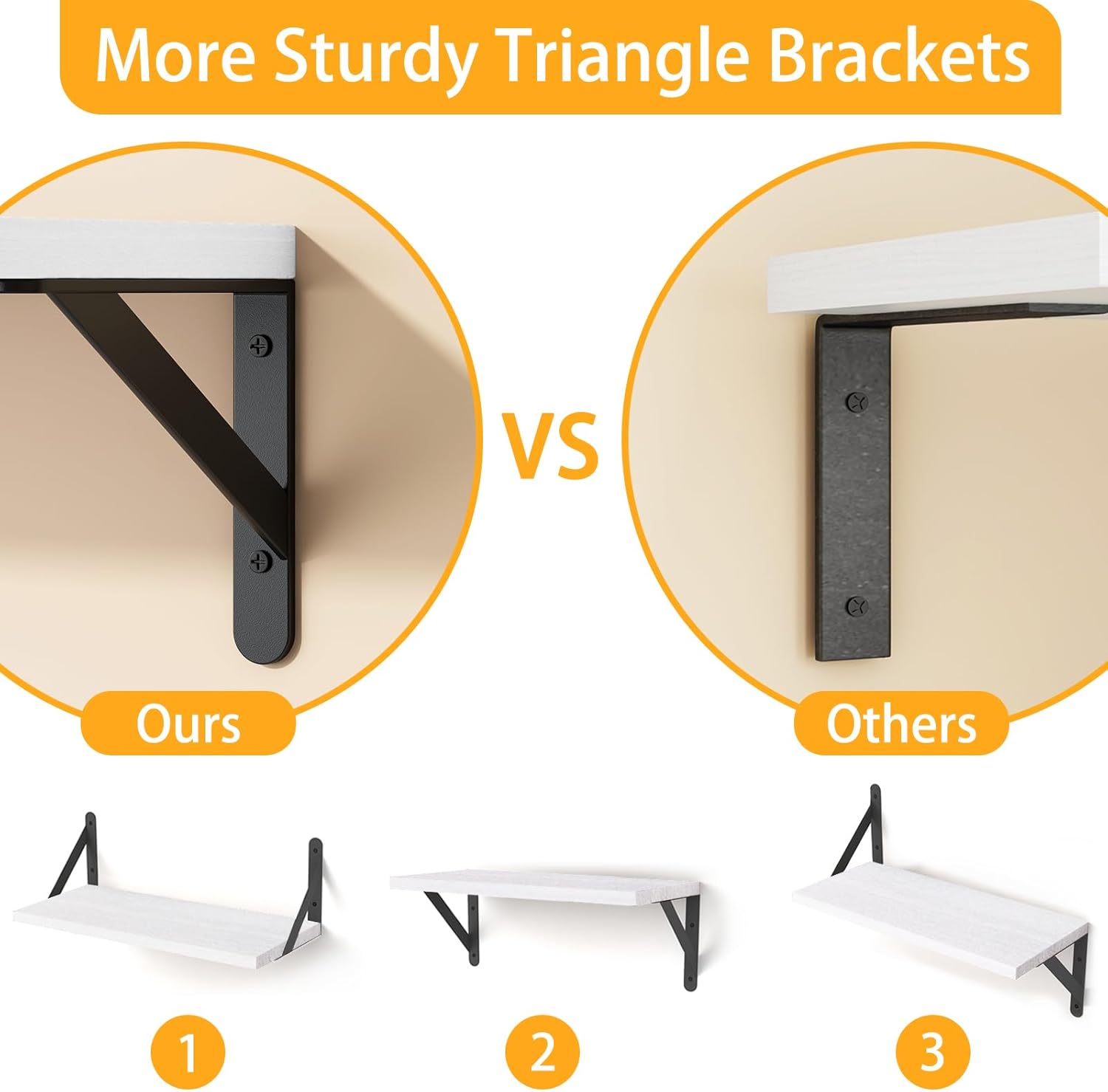 - ăSturdy & Easy to AssembleăThe Triangle shaped metal brackets are more sturdy, with a capacity of 40Lb. YGEOMER wood floating wall shelves for bathroom are super sturdy, very easy to install, all hardware and user manual was included.