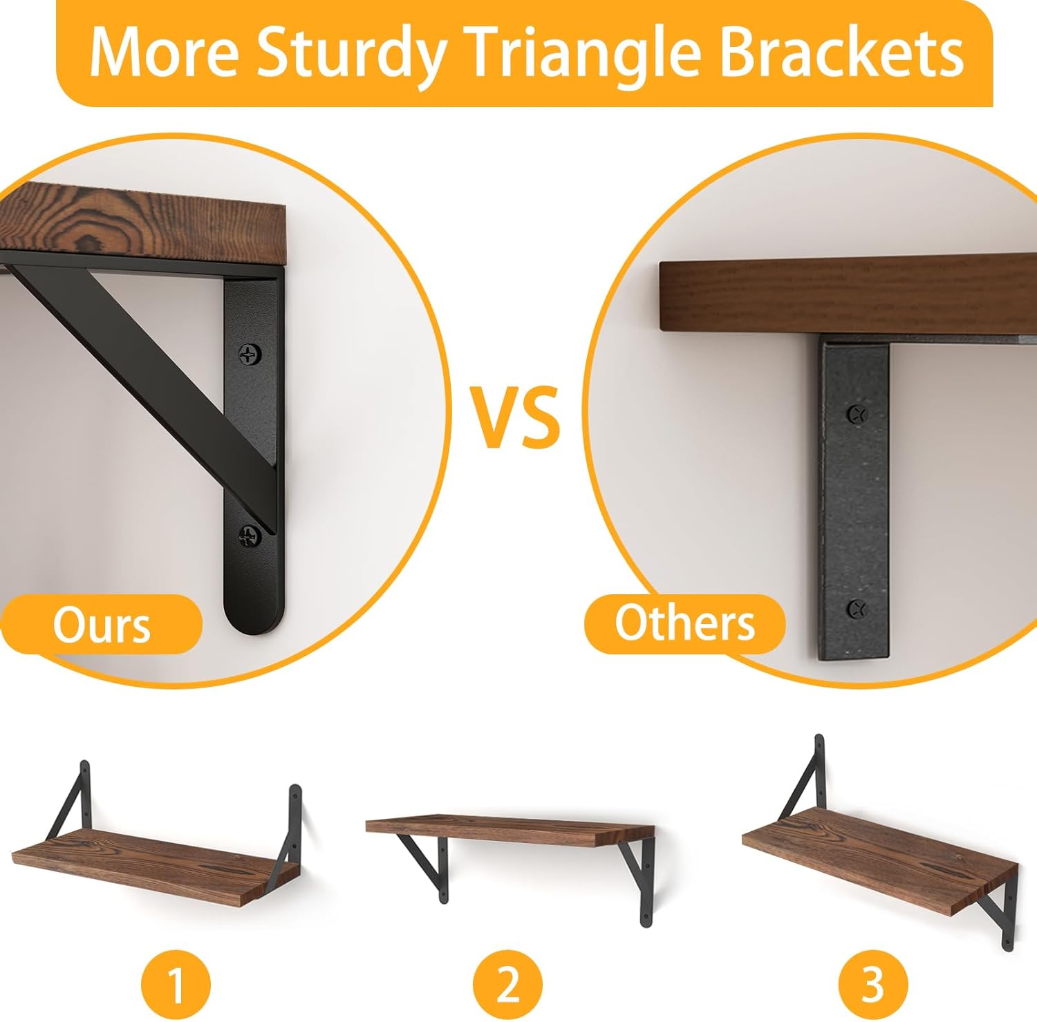 - ăSturdy & Easy to AssembleăThe Triangle shaped metal brackets are more sturdy, with a capacity of 40Lb. YGEOMER wood floating wall shelves for bathroom are super sturdy, very easy to install, all hardware and user manual was included.