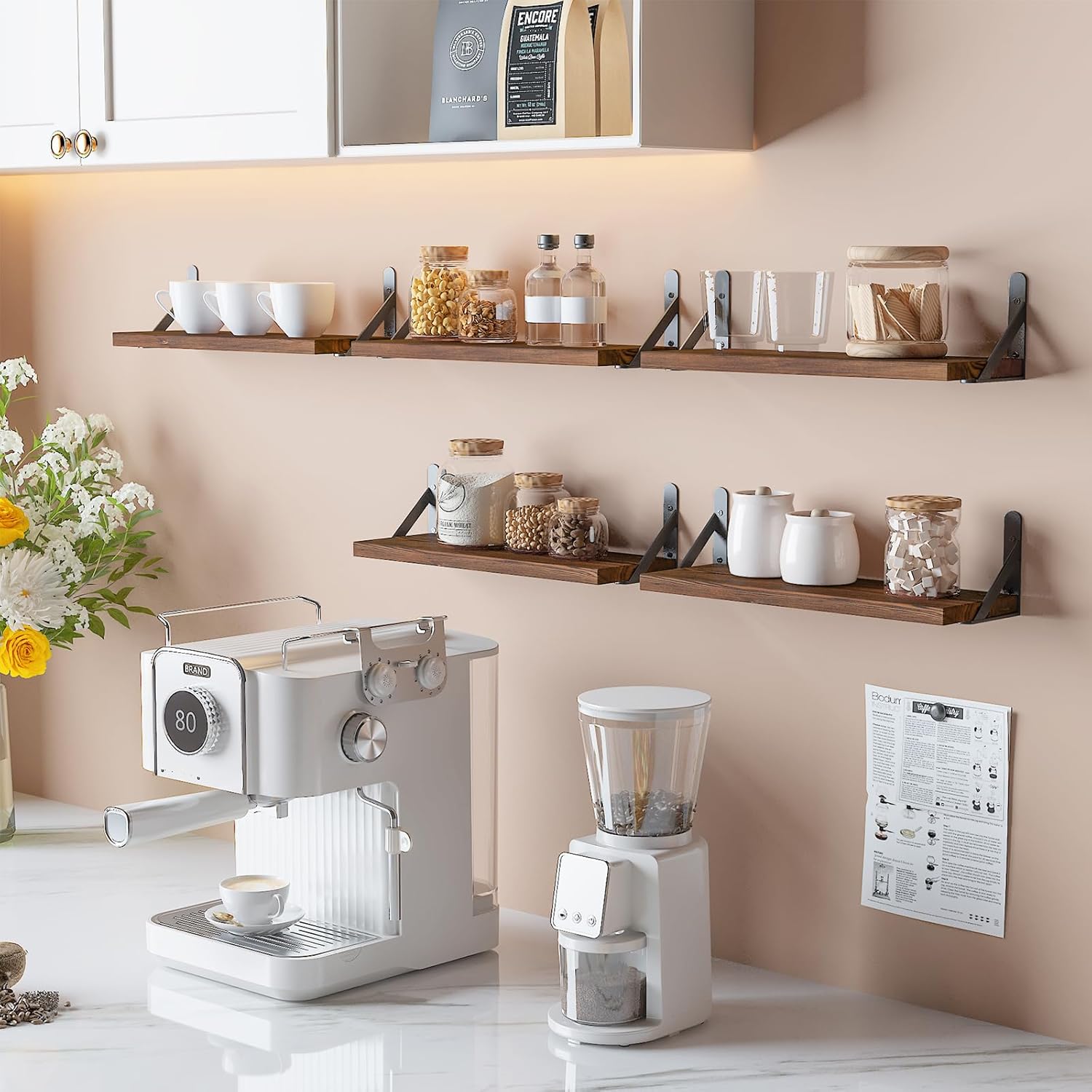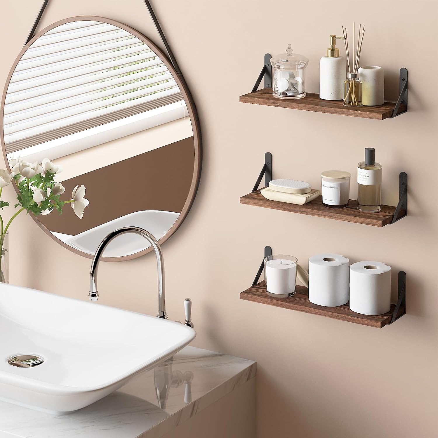 YGEOMER 16.5 Inch Floating Shelves for Wall, Farmhouse Wall Shelves for Bedroom, Bathroom Storage, Living Room and Kitchen Decor (Set of 6 Dark Carbonized Pine)