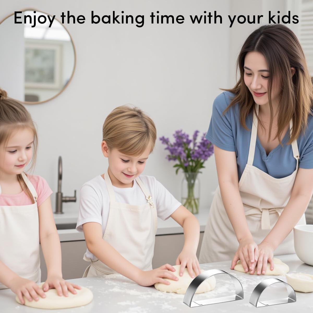 - 【 Half Round Cookie Cutter Set 】Show our semicircle shaped cookie cutters biscuit fondant mold in four assorted sizes. Geometric shapes can stimulate children's spatial imagination. It is cool that teaching your kids geometry while making these half circle shaped cookies