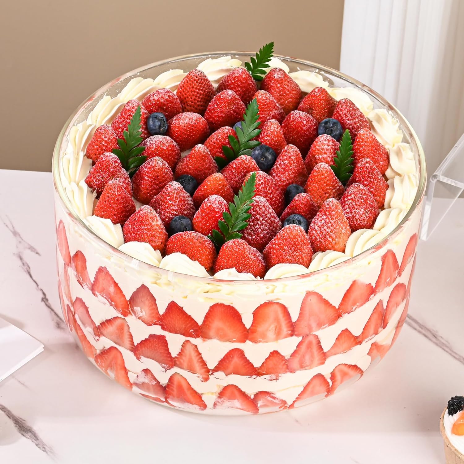 - Practical Trifle Bowl Design: glass Trifle bowl is easy storage and to prolong food freshness. Thick and transparent high borosilicate glass not only ensures food safety and durability, but also allows you to constantly observe the condition of food. The trifle bowl without pedestal can store desserts or salad with lid in your refrigerator easily.