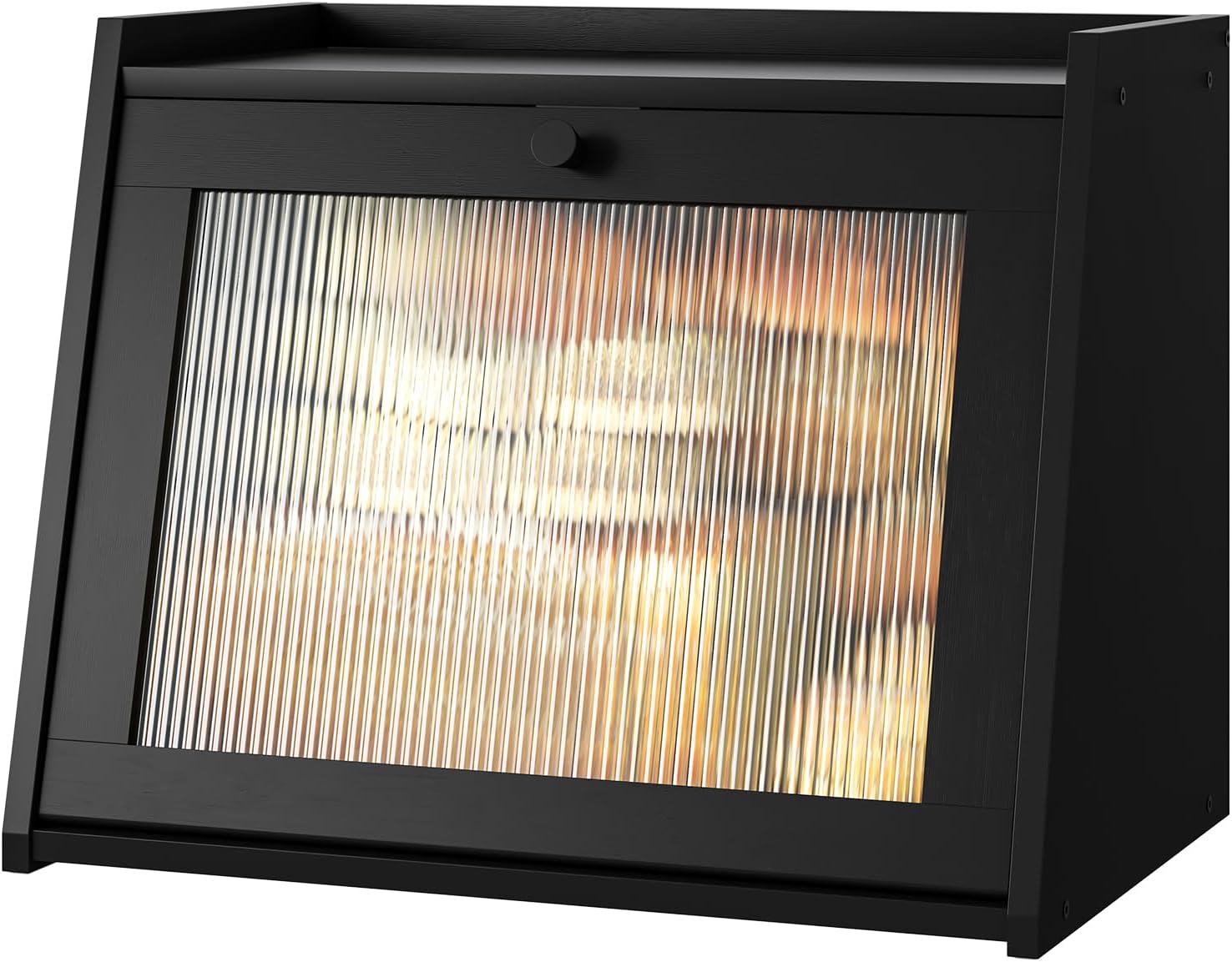 Large Bread Box for Kitchen Counter, Black Bamboo Bread Storage Container with Wavy Arcylic Transparent Door, Bamboo Wooden Farmhouse Bread Box for Your House