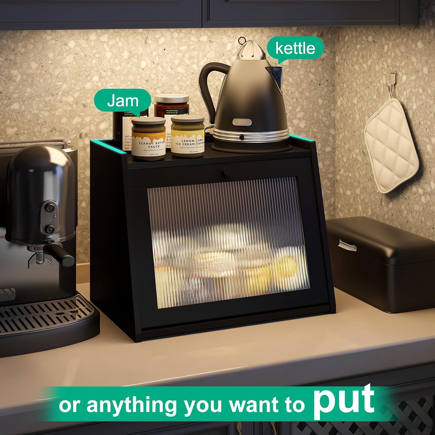 - Flat Top Design: Super load-bearing capacity, any kitchen items you want can be placed on the bread box