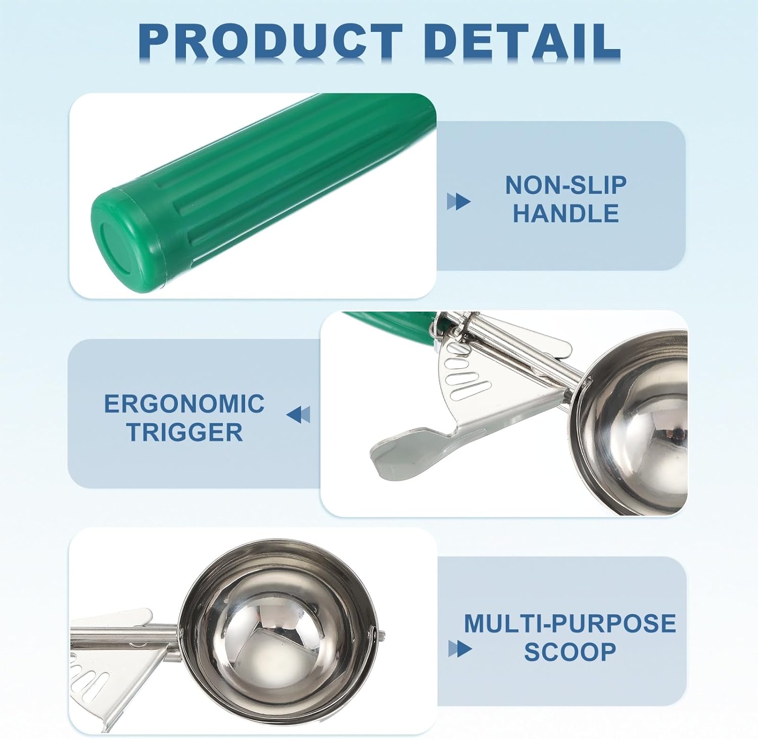 uxcell 3 Pcs Cookie Scoops, Ice Cream Scoop with Trigger for Baking Cookie Dough Rice Pudding Kitchen Gadget, Green
