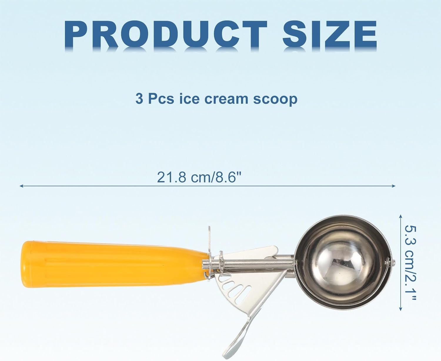 uxcell 3 Pcs Cookie Scoops, Ice Cream Scoop with Trigger for Baking Cookie Dough Rice Pudding Kitchen Gadget, Yellow