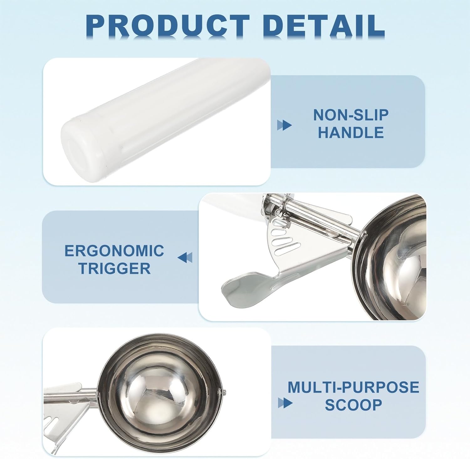 uxcell 3 Pcs Cookie Scoops, Ice Cream Scoop with Trigger for Baking Cookie Dough Rice Pudding Kitchen Gadget, White
