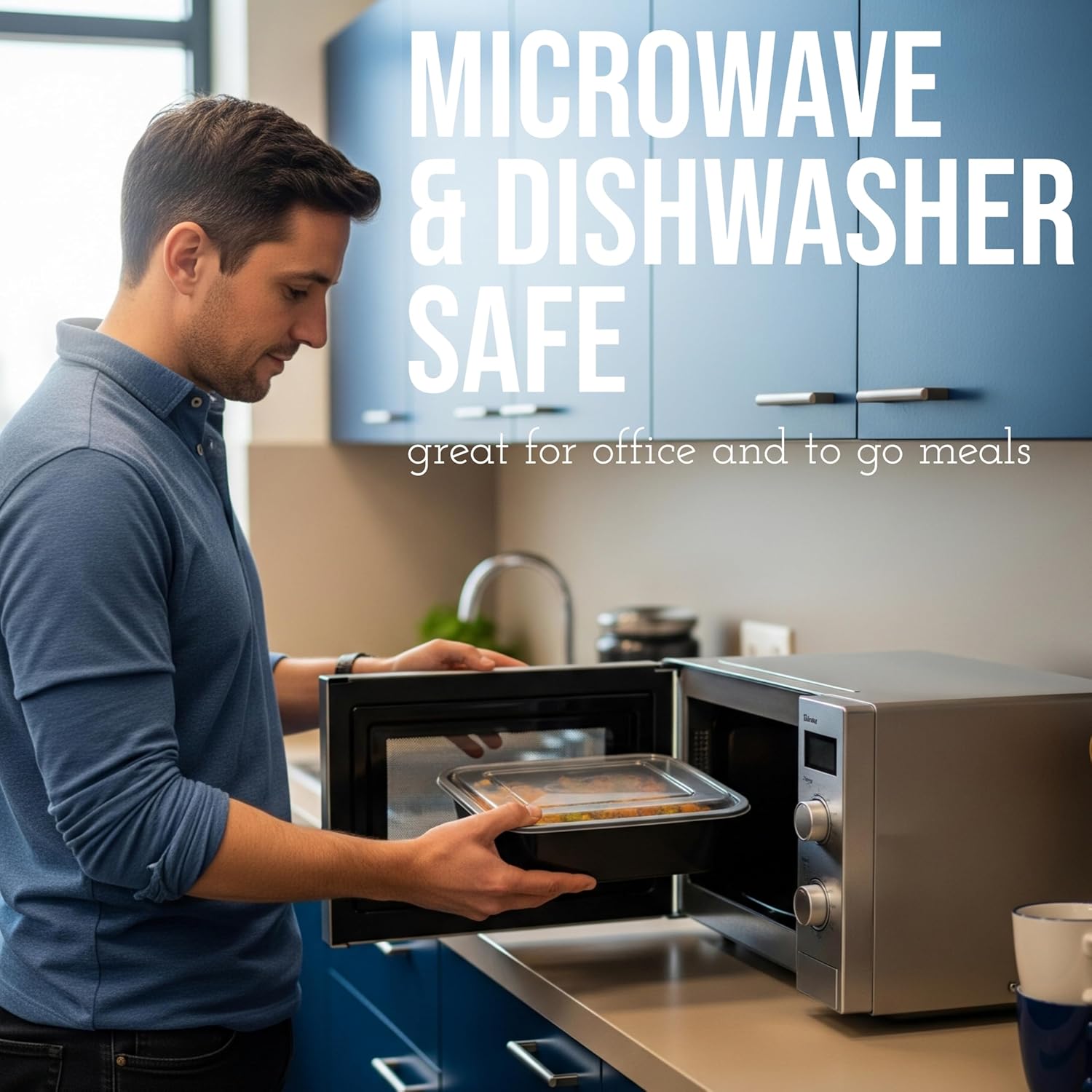 - MICROWAVE, DISHWASHER & FREEZER SAFE: Designed for your convenience, these containers are built to handle the entire meal prep cycle. Safely store meals in the freezer, reheat them directly in the microwave (without lid), and enjoy effortless cleanup by simply placing them on the top rack of your dishwasher.