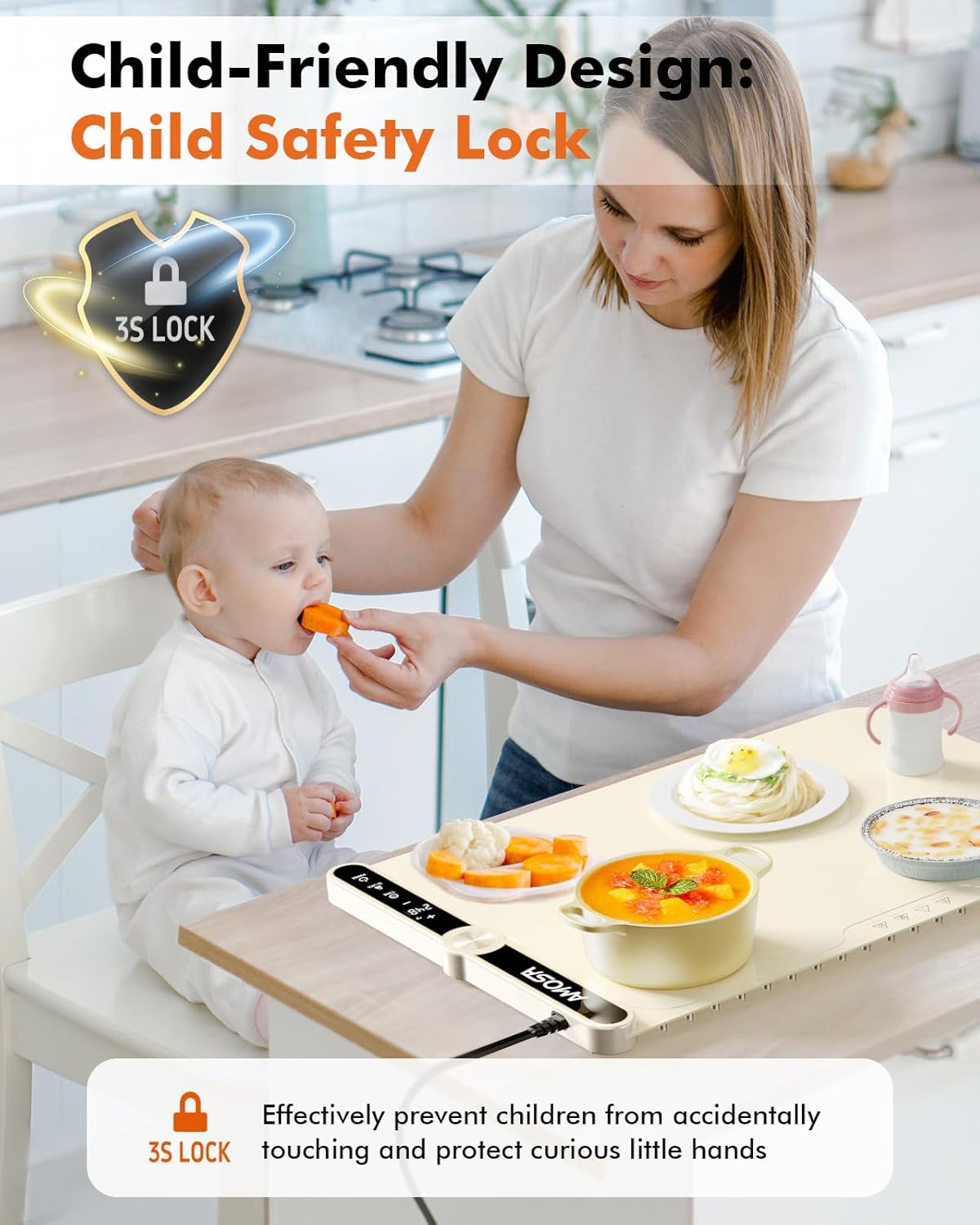 - 【What You Get】AMOSA Electric Food Warmer*1, Power Cord*1, Silicone Straps*1, Storage Bag*1, Placemat*1, User Manual*1, AMOSA up to 24-month after-sales service, and 7-day/24-h friendly customer service. If you have any problems, we will 100% solve them.
