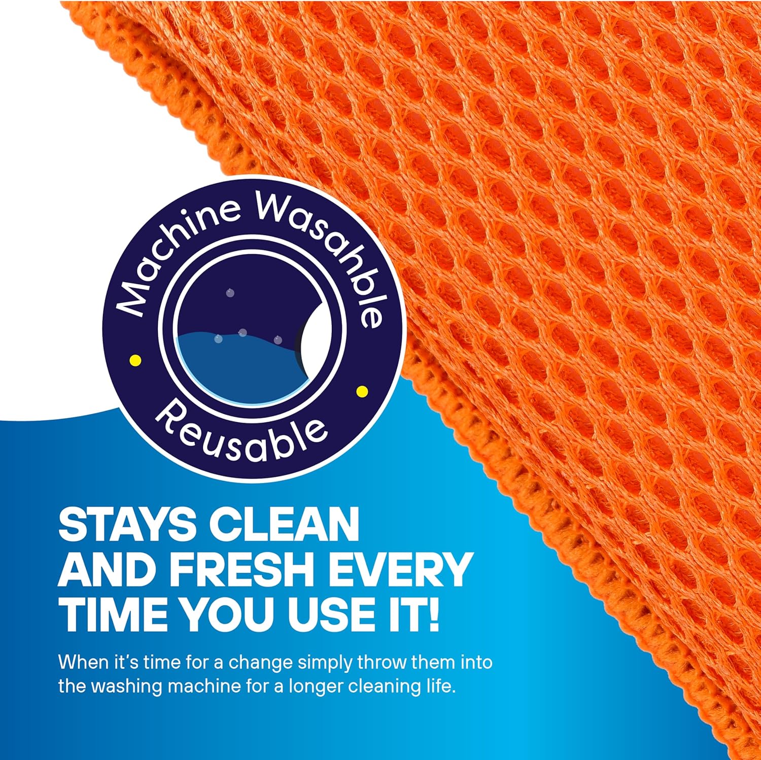 SCRUBIT Reusable Sponges for Dishes - 12 Pack Microfiber Sponges Kitchen Dish Scrubber, Machine Washable & Non-Scratch Scrubbers (Orange)