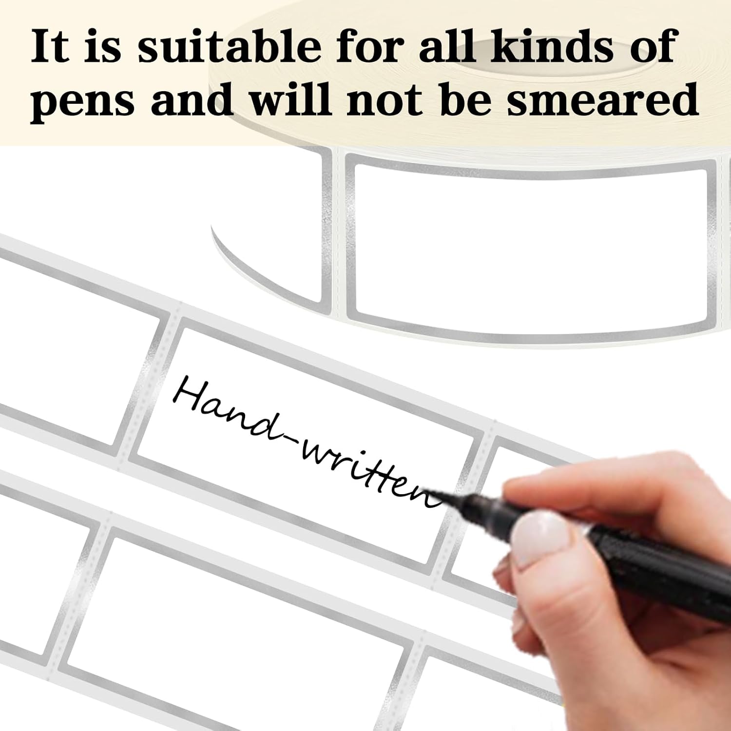 - Packaging: 600 pcs on a roll,Each measures 1” X 2”,Blank and white with silver border