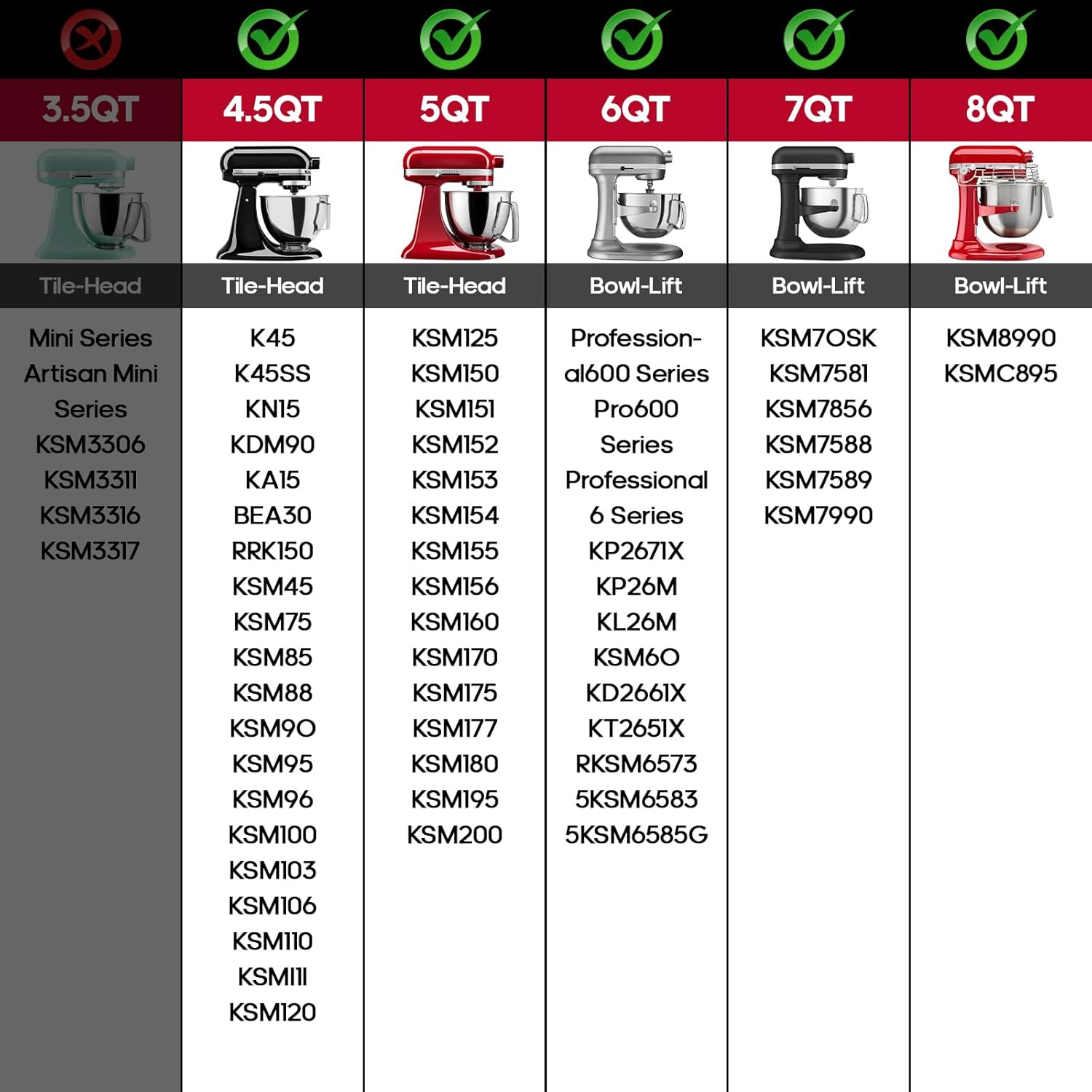 - EASY INSTALL: This kitchenaid mixer attachments with a ice cream bowl, dasher and drive assembly. The drive assembly port A is fit for 4.5-5QT Tilt-Head stand mixers, the port B fit for 6QT or larger Bowl-Lift mixers. IMPORTANCE: To install this kitchenaid ice cream attachment for kitchenaid 6QT bowl-lift mixer, please align bowl edge with back hooks first, then press down firmly until locked. Will prevent the ice cream bowl wobbling.