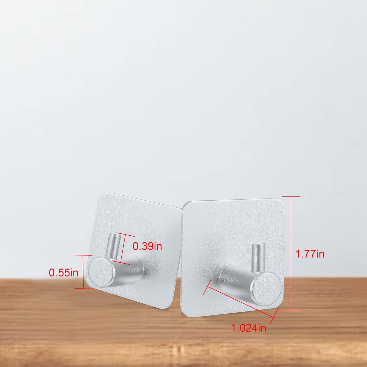 Aluminum Wall Hooks, No Drill Damage-Free Adhesive Hook, Product for Hanging Heavy Duty for Bathroom Kitchen Home (Single Square Sliver Hook, 4)
