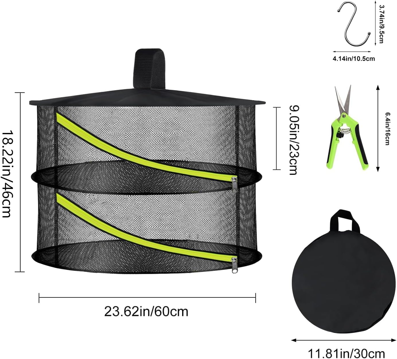 2 Layer Herb Drying Rack, Hanging Mesh Net, Foldable Plant Drying Rack with Diagonal Zipper, Garden Trimming Shears and Hooks, for Drying Herbs Plants, Fruits, Seafood, Clothing(2 Layers-23.62'')