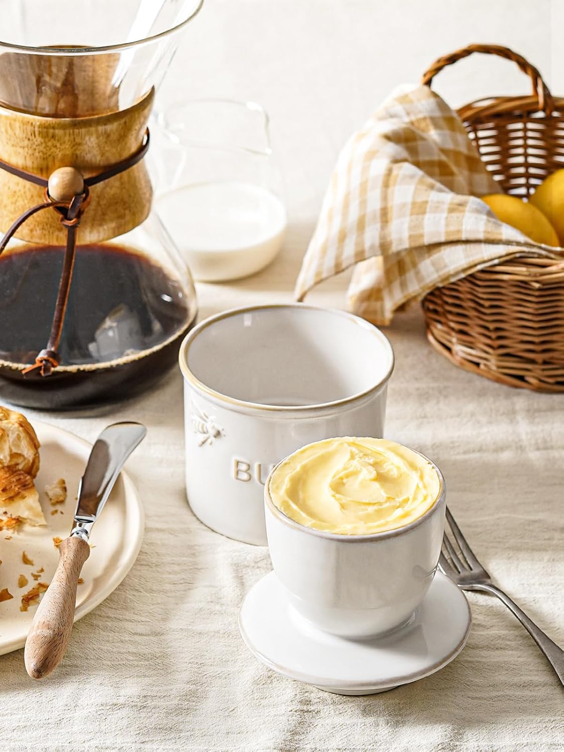 - Elevate Breakfast Experience: Say goodbye to spreading cold butter from the fridge in the morning! This butter crock keeps butter fresh and soft at room temperature (works best for real butter instead of margarine), easily spread on rolls, bread, toast, waffles, pancakes and more. Enjoy a good life starting with a pleasant breakfast