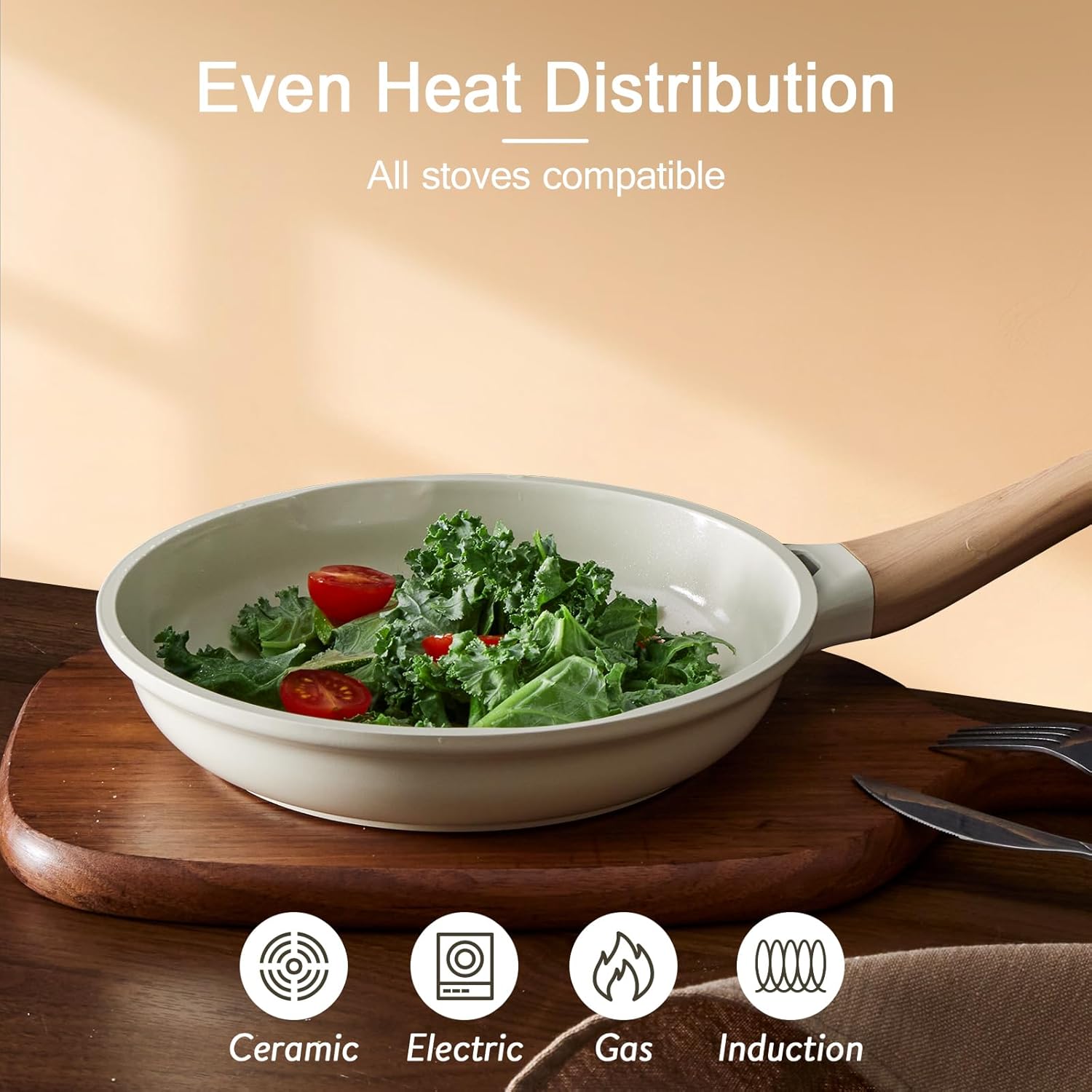 - 【Even Heating, Every Time】Designed for home chefs who demand speed and precision, this pots and pans set heats evenly with no hotspots, thanks to its extended bottom surface. Compatible with gas, electric, ceramic, and induction cooktops