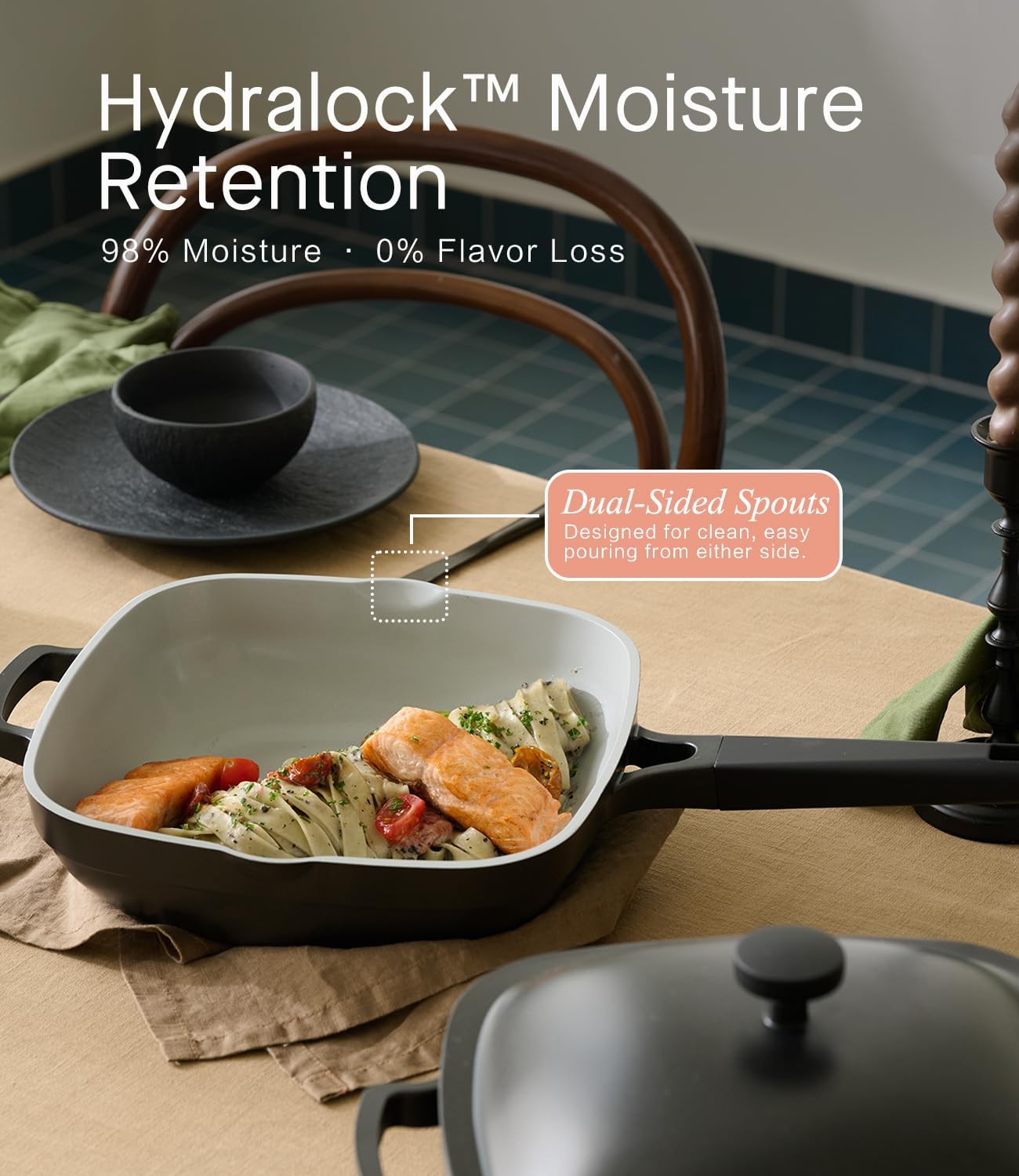 - (Patented)All-in-One Pix Pan: Our Pix square pan offers 45% more cooking surface than standard round pans, more than a frying pan,letting you sear, sauté, braise, stir-fry, and more — all in one versatile piece. Replacing your frying pan, saucepan, wok, braiser, sauté pan, nonstick pan, and even stock pot, it’s perfect for cooking multiple portions without overcrowding. Ideal for families, meal prep, and anyone who loves efficiency in the kitchen.