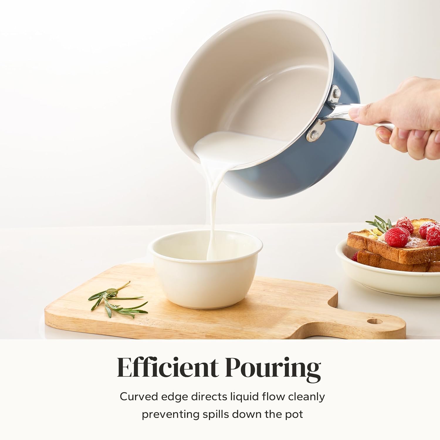 Redchef Nonstick Ceramic Sauce Pan With Lid, 3.5QT Small Cooking Pot with Stay-Cool Handle, Kitchen Non Toxic Soup Pot, PTFE & PFOA Free, Oven & Dishwasher Safe, Compatible with All Stovetops-Blue