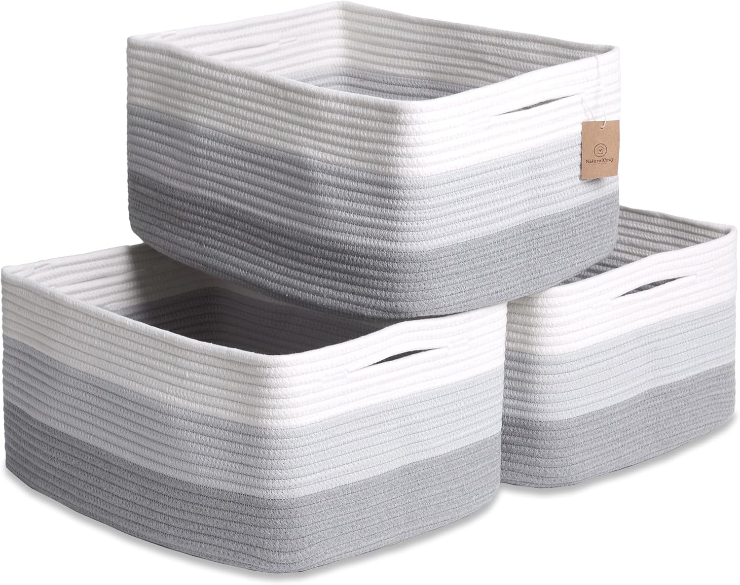 NaturalCozy Storage Baskets 16.8”x13”x7.6” Cotton Rope Woven Baskets for Organizing 3-Pack | Toy Storage Bins | Basket for Shelves, Laundry, Blanket, Clothes, Closet, Kitchen, Bathroom, Gifts