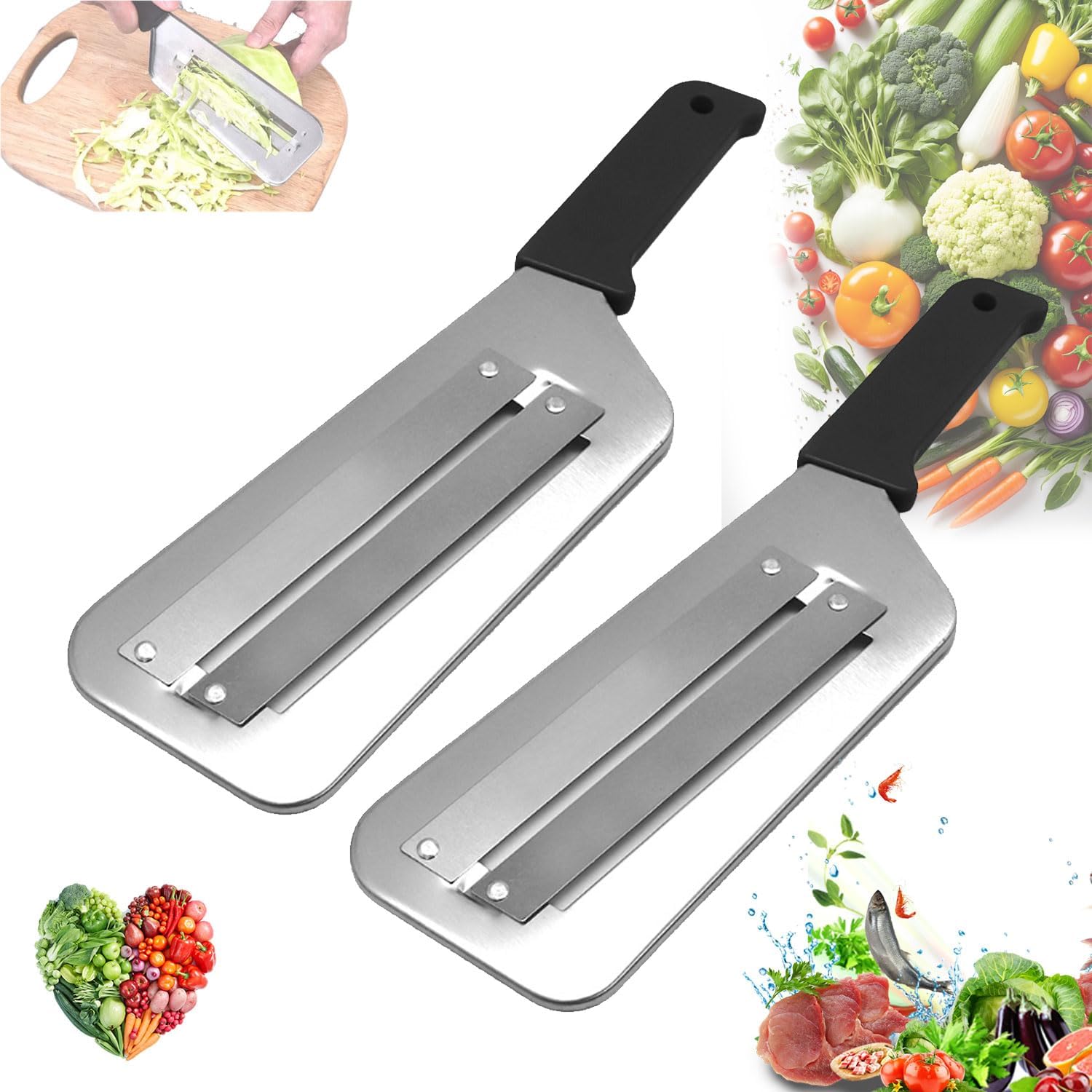 Dual Blade Julienne Cutter, Stainless Steel Shredder Slicer, Stainless Steel Cabbage Shredder for Coleslaw, Cabbage Slicer, Suitable for Vegetables and Fruits (Black*2)