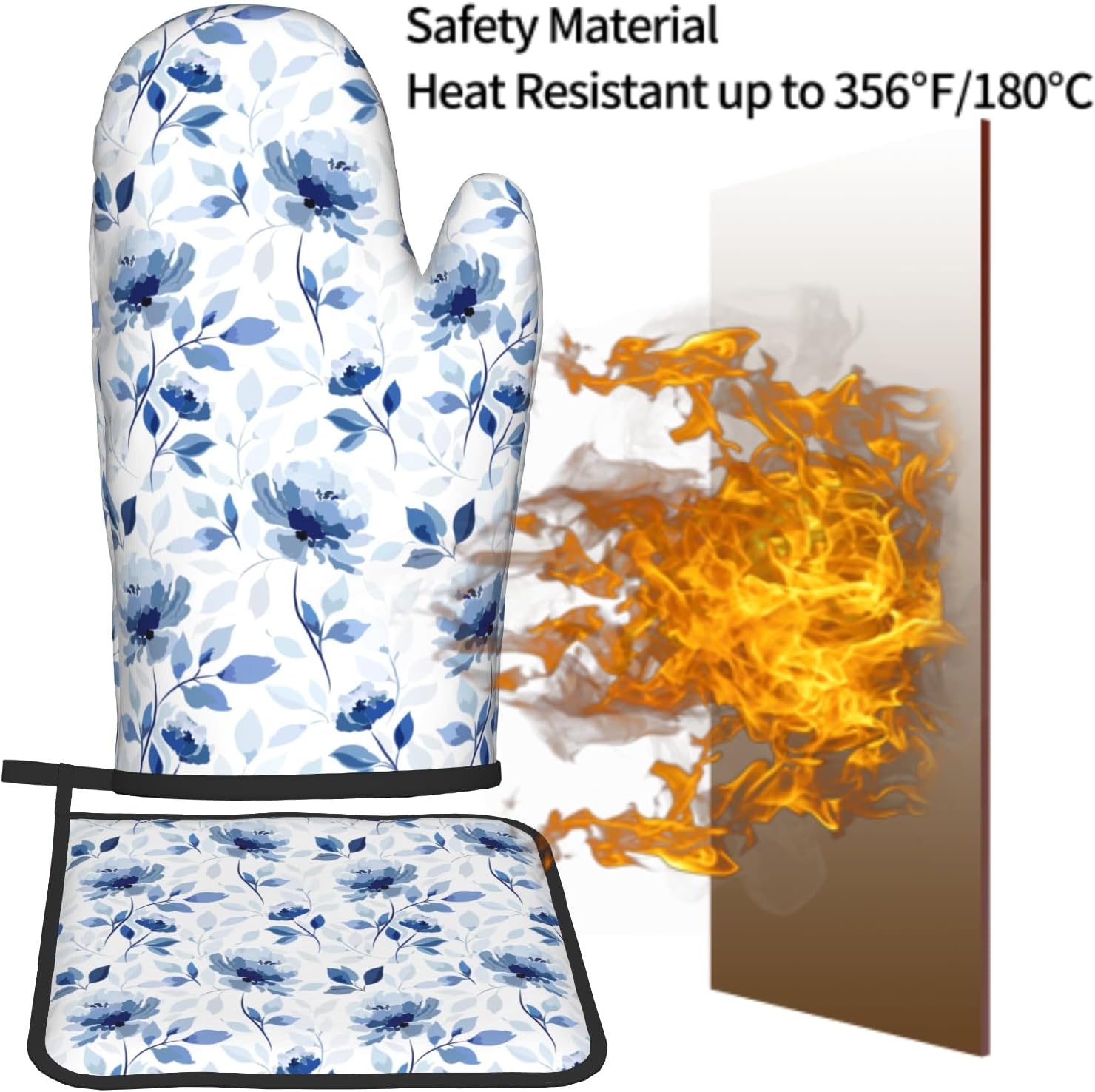 - 【Waterproof Fabrics】Our blue leaf oven gloves are made of waterproof fabric for both the inner and outer layers, making them easier to clean. The soft and thick quilted lining adds extra comfort while you're cooking. Make cooking in your kitchen safer and more convenient.