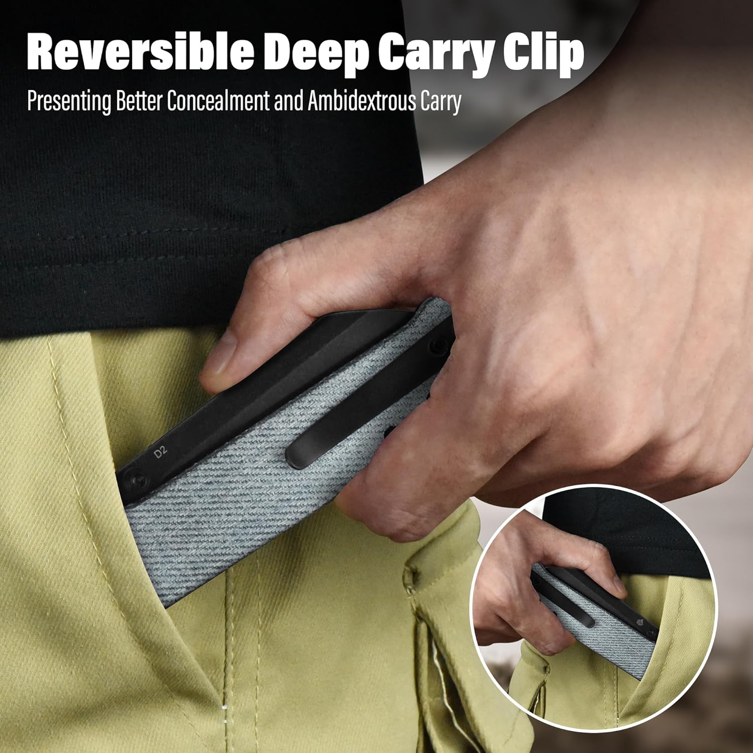 - Easy to Carry: This edc knife weighs only 3.28 oz and has closed length of 4 inches. It comes with reversible ss deep carry clip, making it easy to attach to your gear or clothing. Whether you are left-handed or right-handed, it is easy to use.