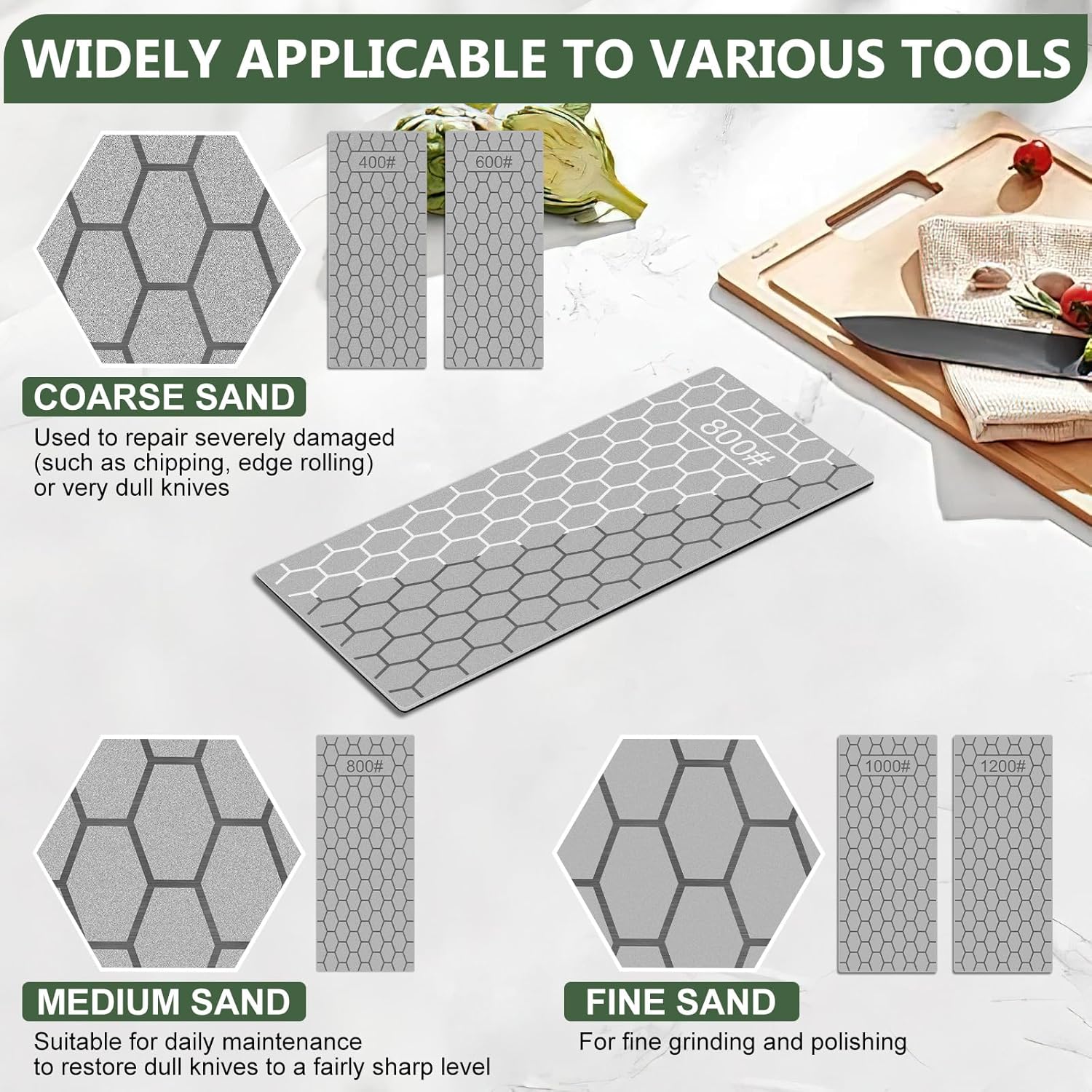 - VERSATILE SHARPENING SOLUTION:From kitchen blades to chisels/axes – this diamond sharpening plate masters all tasks. Perfect sharpening stones for knives and tools