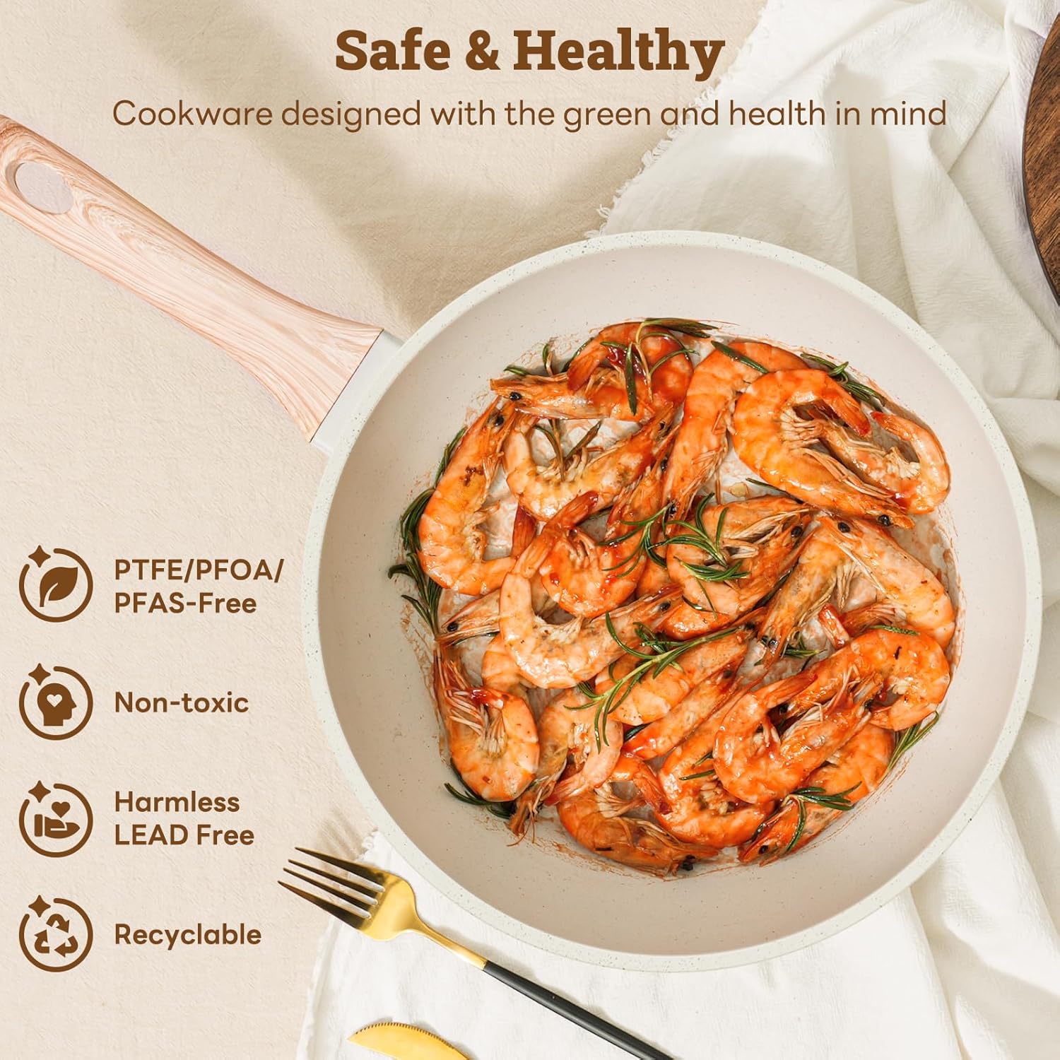 17 Pcs Pots and Pans Set Non stick,Cookware Sets White Granite Induction Cookware, Non-toxic Healthy Non Stick Kitchen Cooking Set with Frying Pans Set, Saucepans (PFAS, PFOA, PFOS Free) White