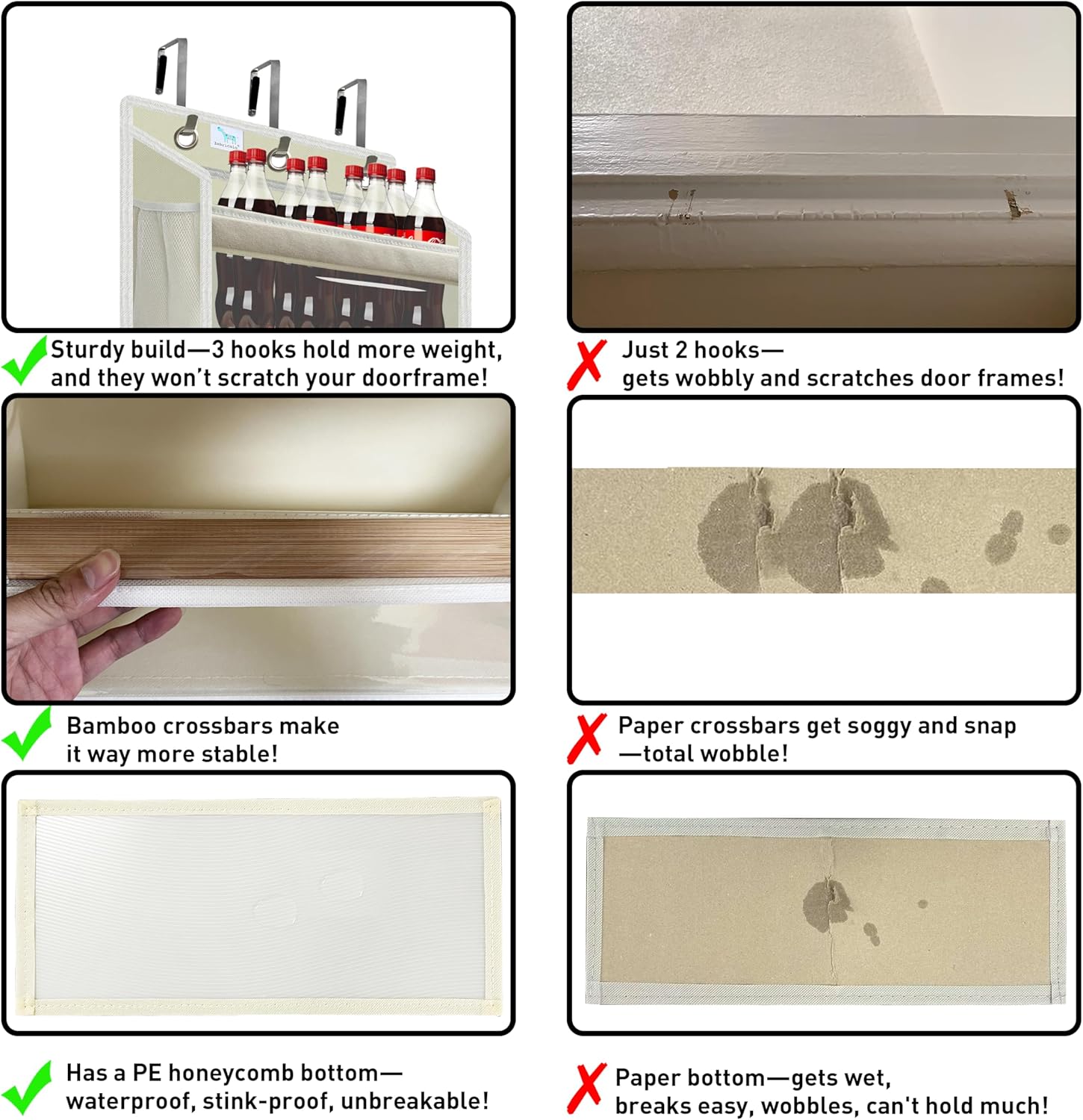 - ăSolid Bamboo Panels â No Cheap Plastic!ă door organizer hangingïŒ Eco-Friendly & Sturdy â Unlike weak plastic/paper boards that snap, our real bamboo panels are waterproof, washable, and wonât warp or smell. Smooth, Splinter-Free Finish â Safe for kidsâ nursery & delicate items. over the door organizer nursery.