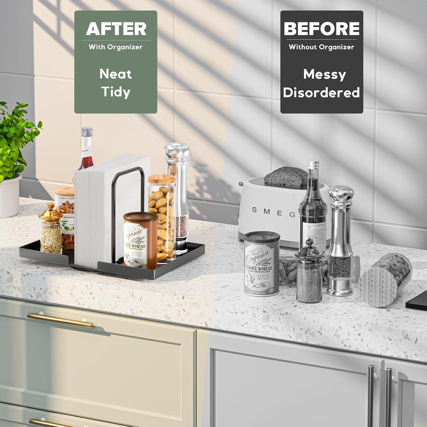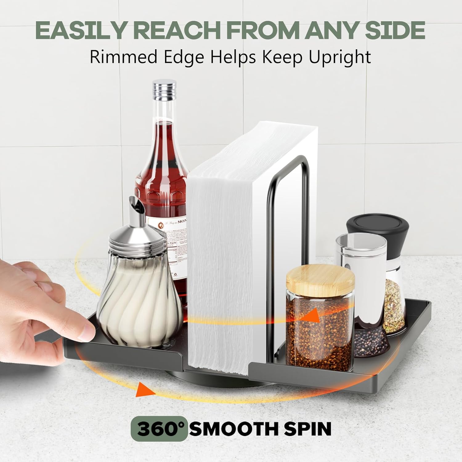 - 360° Rotating Organizer: Gomyrod Napkin Holder features 360° rotating design, making it easy access to napkins and seasoning jars from any angle. Keeps the utensils you need within reach at all times