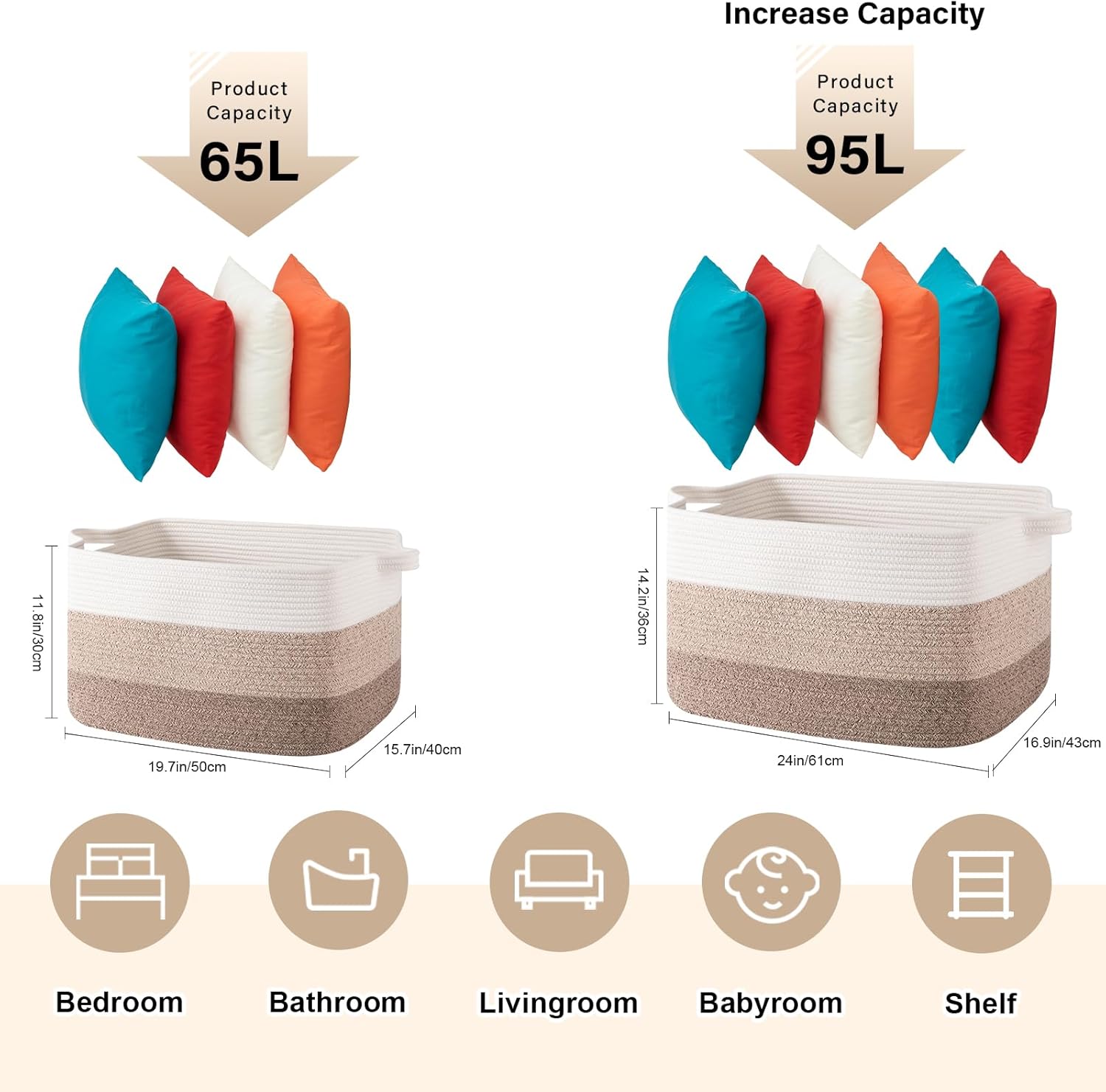 - Large Storage Basket: Large storage basket, perfect for throwing pillows, cushions, blankets, comforters, toys, and clothes. Keep the toy basket in the kid's room, family room, or any room in the house that could use extra storage: fits on a closet shelf, bookshelf, etc