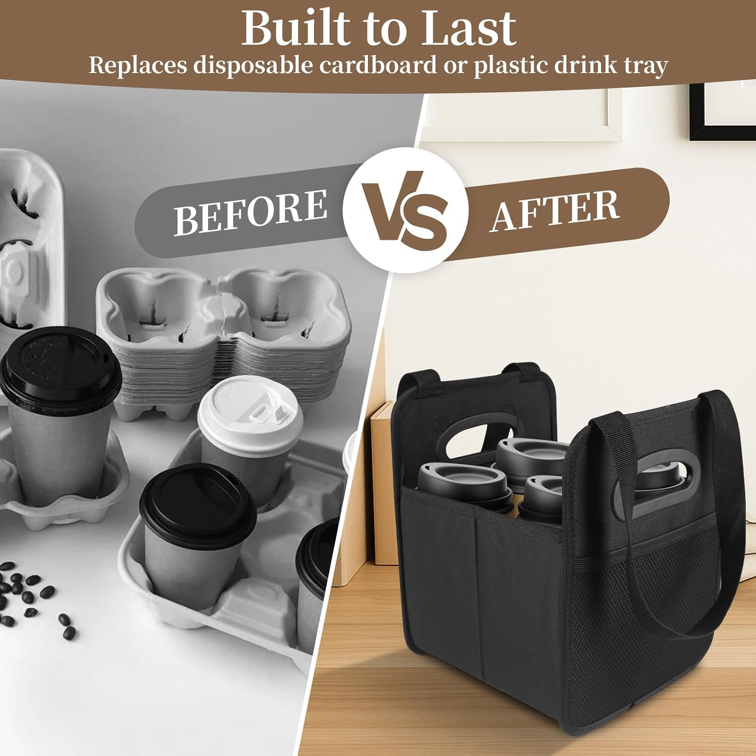 - 【 Easy to Carry 】 The sturdy drink carrier with handle is ergonomically designed, providing a comfortable grip. It can be carried on the shoulder or by hand, Our cup carriers can easily carry 4 cups or containers. Whether you are at work, shopping, or traveling, you can order takeout and enjoy coffee at the same time with nothing in your hands.
