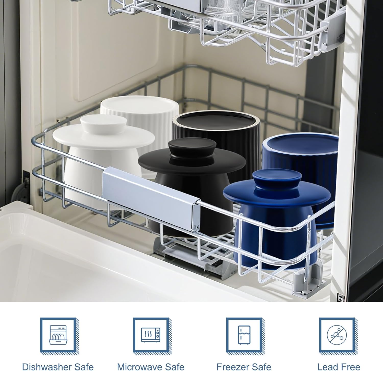 - 🧈ALWAYS SOFT, SPREADABLE BUTTER: Ditch the fridge frustration! Our butter crock keeps butter perfectly soft and spreadable — no more microwaving or awkward scrapin. The airtight water seal preserves freshness for up to 30 days (salted) and 10 days (unsalted). Enjoy velvety butter on toast, pancakes, or baked goods every time
