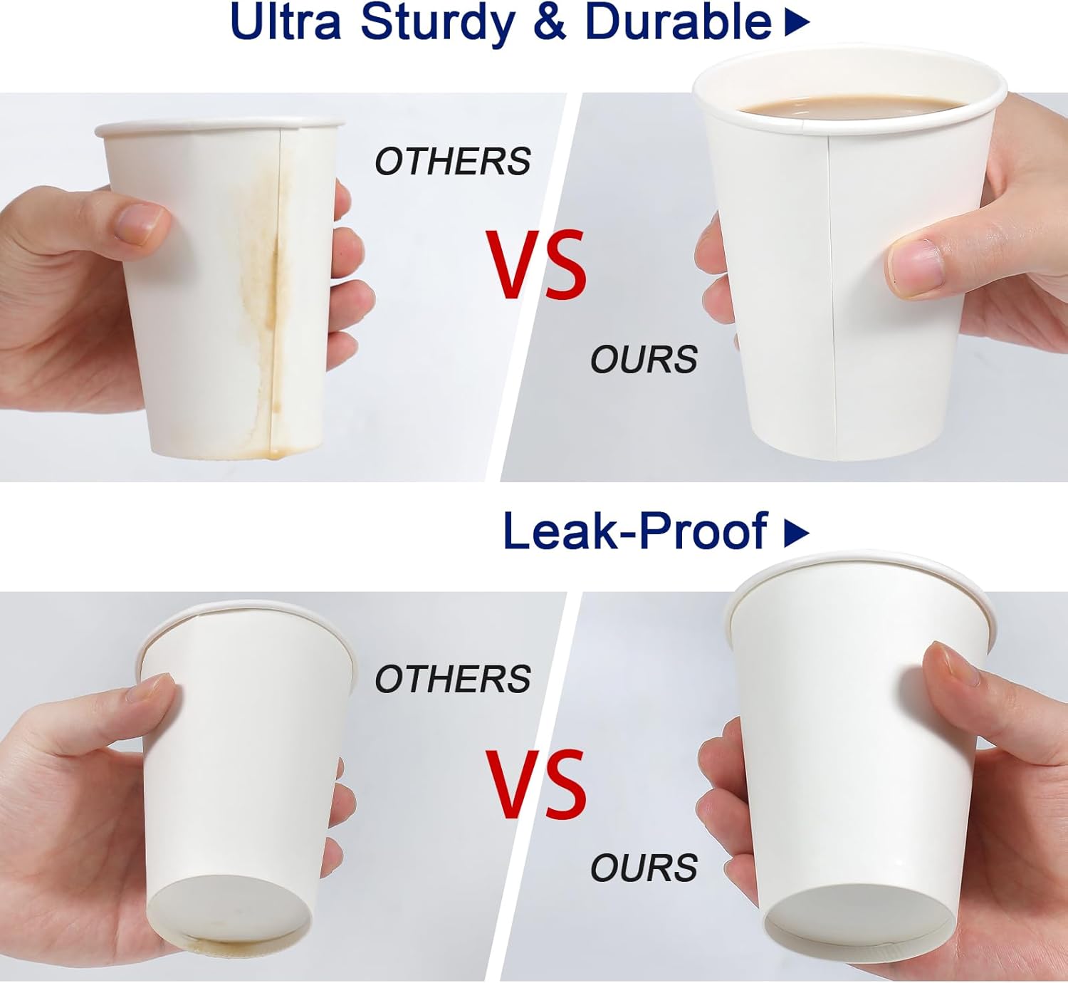 - Sturdy & Durability: These 12 oz coffee cups are sturdy and anti-leak; strong cup body with rolled rim is for rigidity and strength to prevent unwanted spills; you can use one cup several times to avoid waste, saves you some dishwashing work
