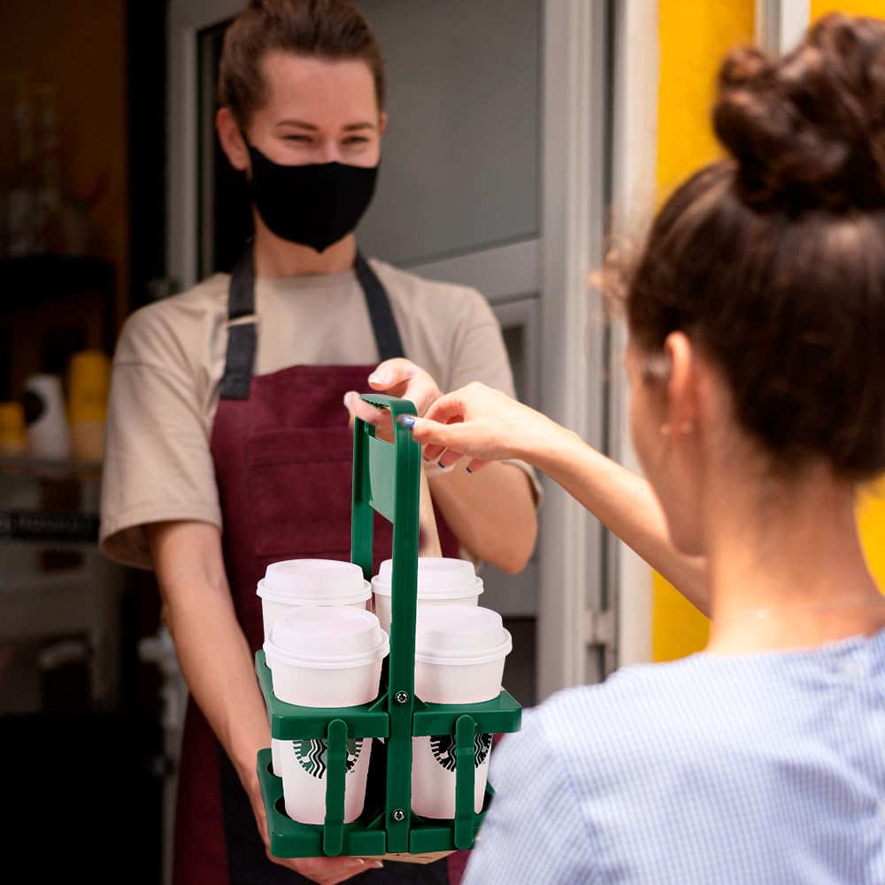 Bodaon 4 Cup Drink Carrier with Handle, Plastic Cup Carriers for Drinks, Drink Holder for Car, GrubHub/Eats Doordash Accessories, Portable Foldable Reusable Mobile, Use for Food Delivery Bag, Green