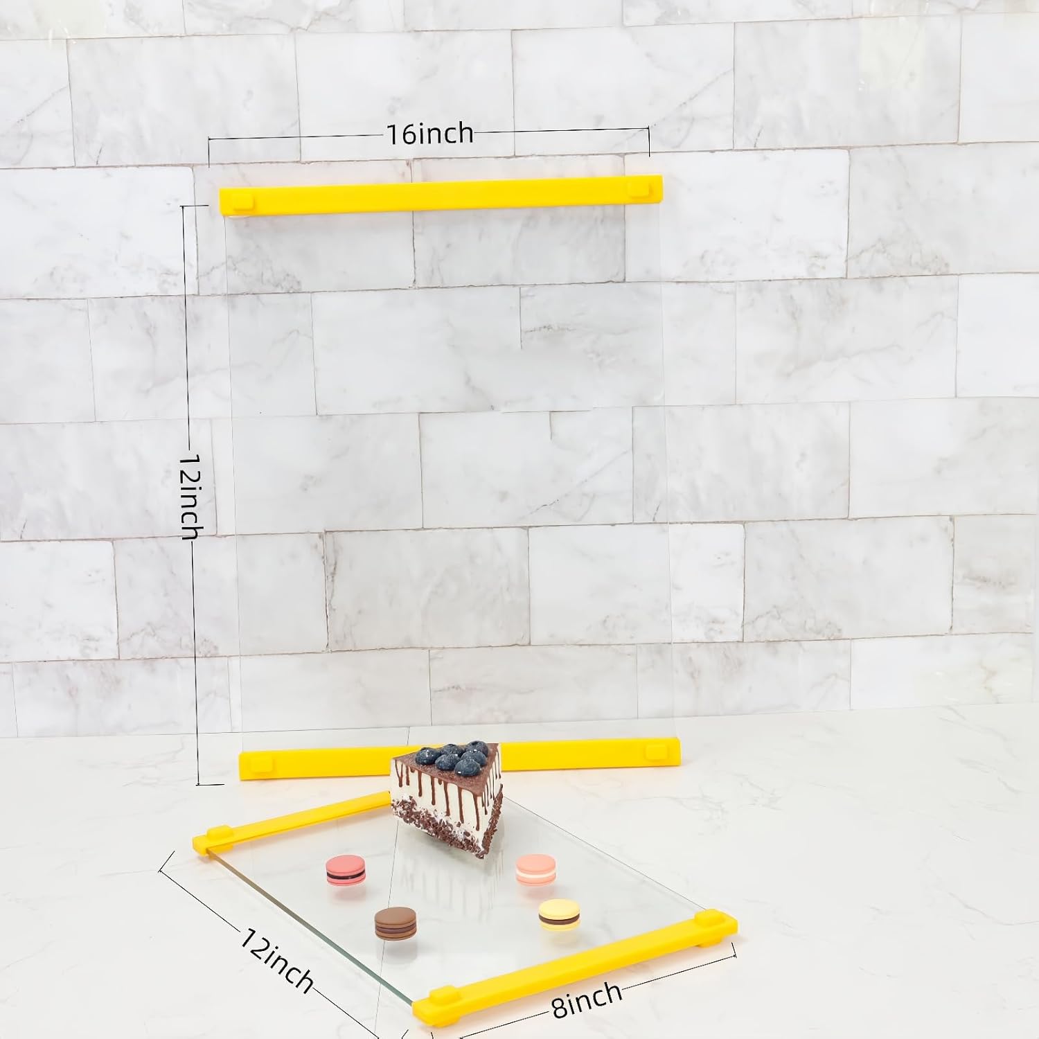 Large Tempered Glass Cutting Board for Kitchen with Silicone Handle-Non Anti slip and easy to grip,Dishwasher-Safe Easy to Clean for Food Prep,Serving Tray(Yellow-16 * 12")