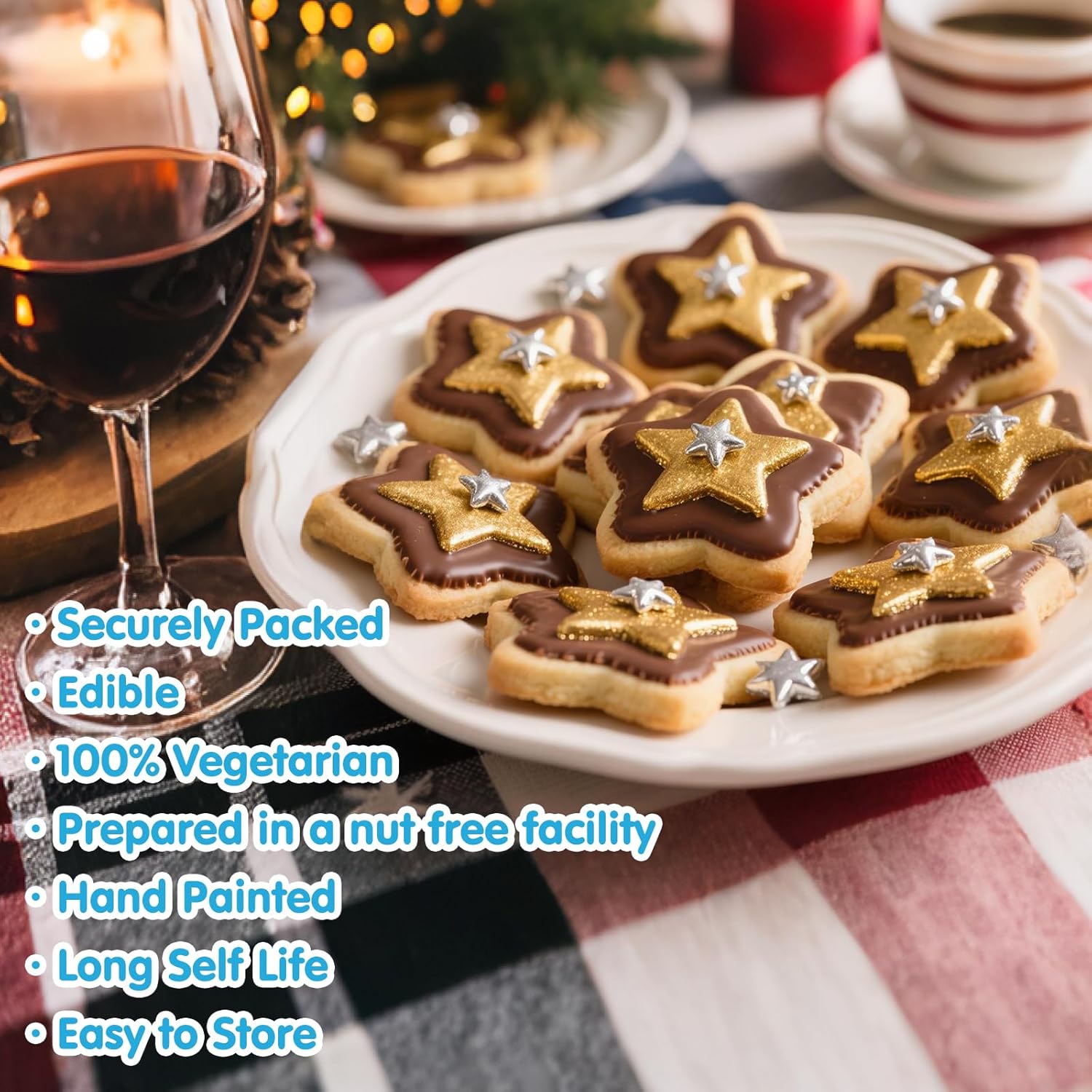 - Silver Star Sprinkles with food-grade raw materials:Preservative Free,Nut Free,Dairy Free,Chemical Free,Soy Free,Non-GMO.Produced using food-safe standards,the process does not come into contact with allergenic substances and uses Tamper-proof food label