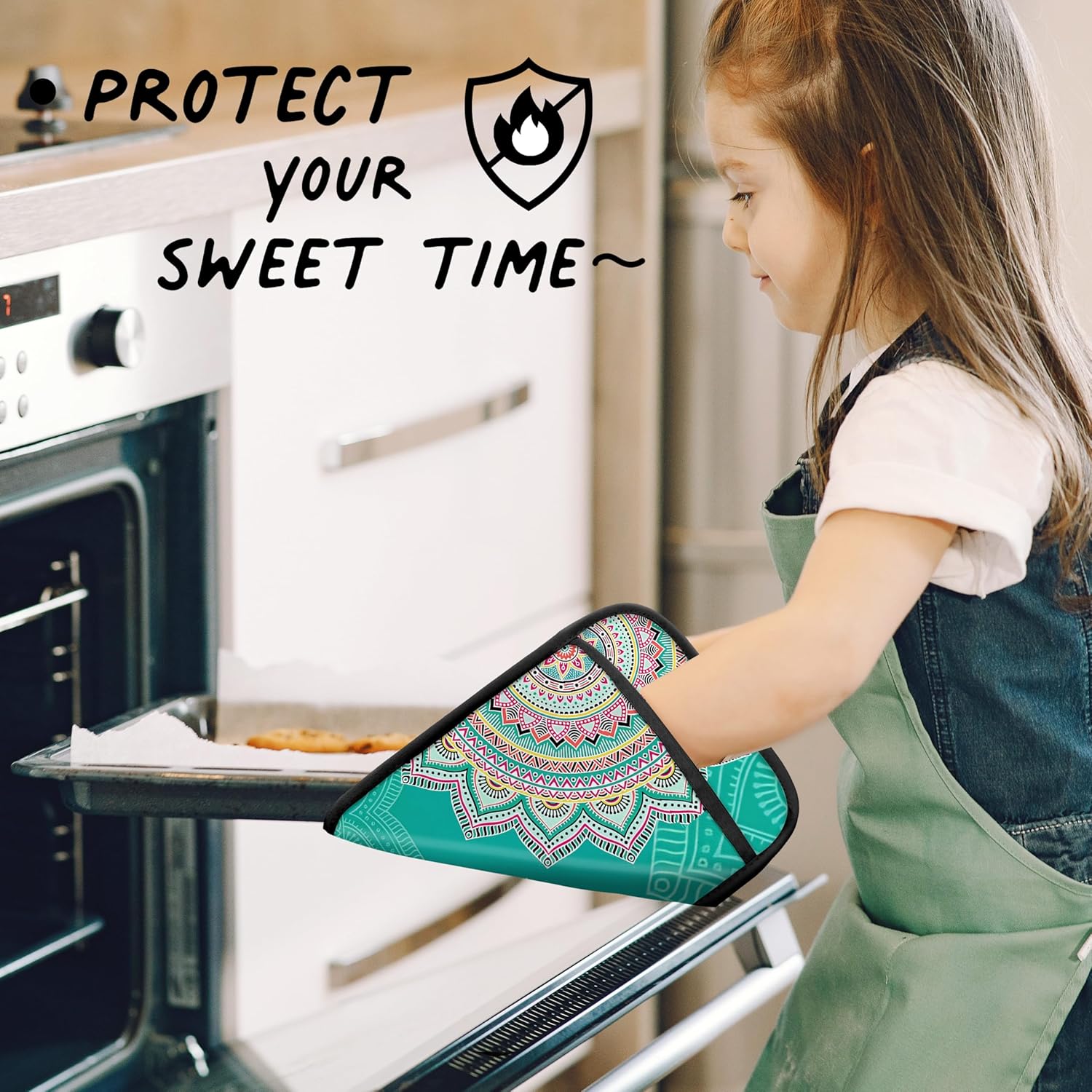 Turquoise Abstract Mandala Floral Pot Holders for Kitchen, Boho Colorful Ethnic Flower Botanical Heat Resistant Hot Pads and Oven Mitts for Baking Cooking,379 potholder