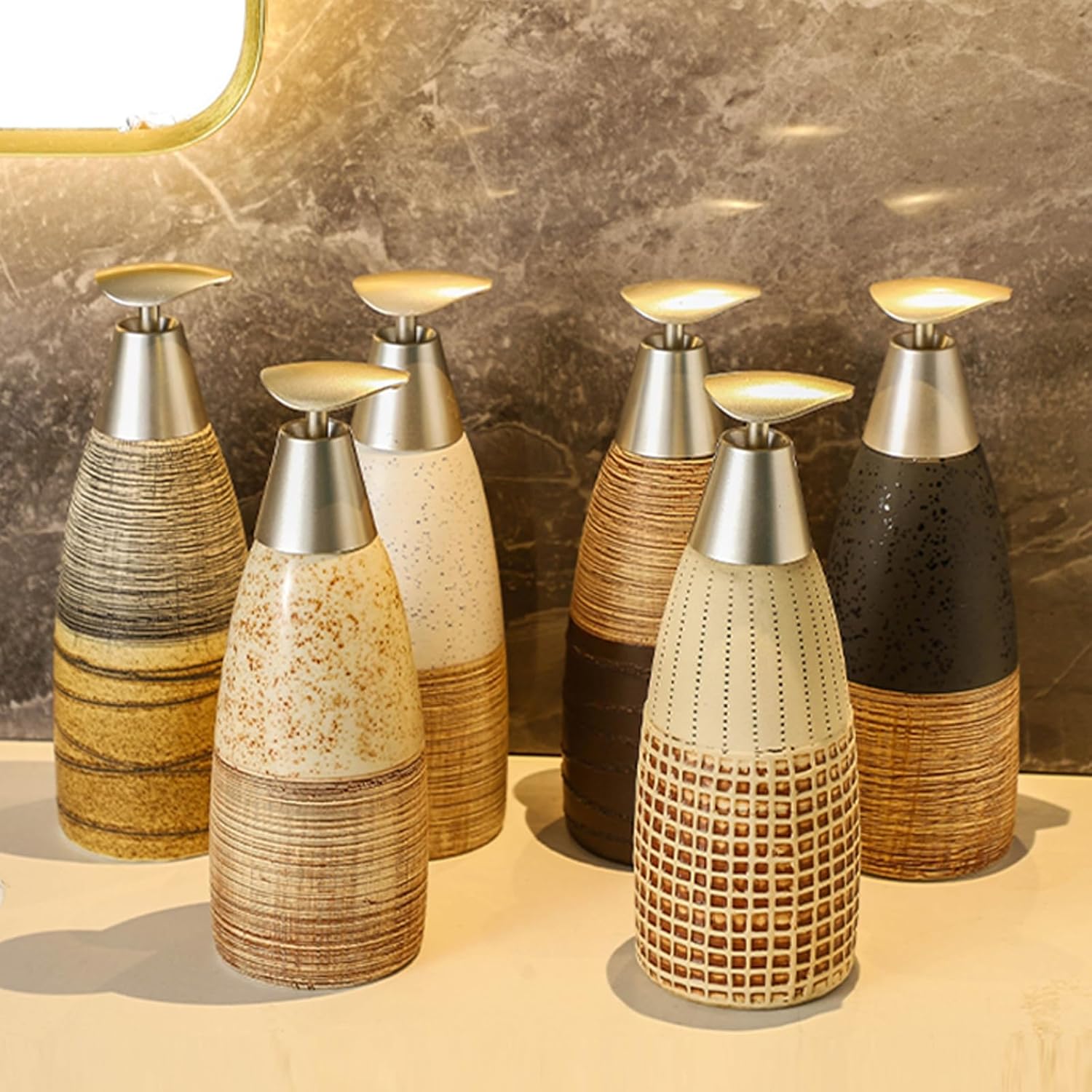 - 🎨 Unique Artistic Design Crafted with a premium glaze finish and subtle texture details, this ceramic soap dispenser adds an elegant accent to bathrooms, washrooms, vanity countertops, or powder rooms. Its versatile look complements everything from modern to minimalist interiors.